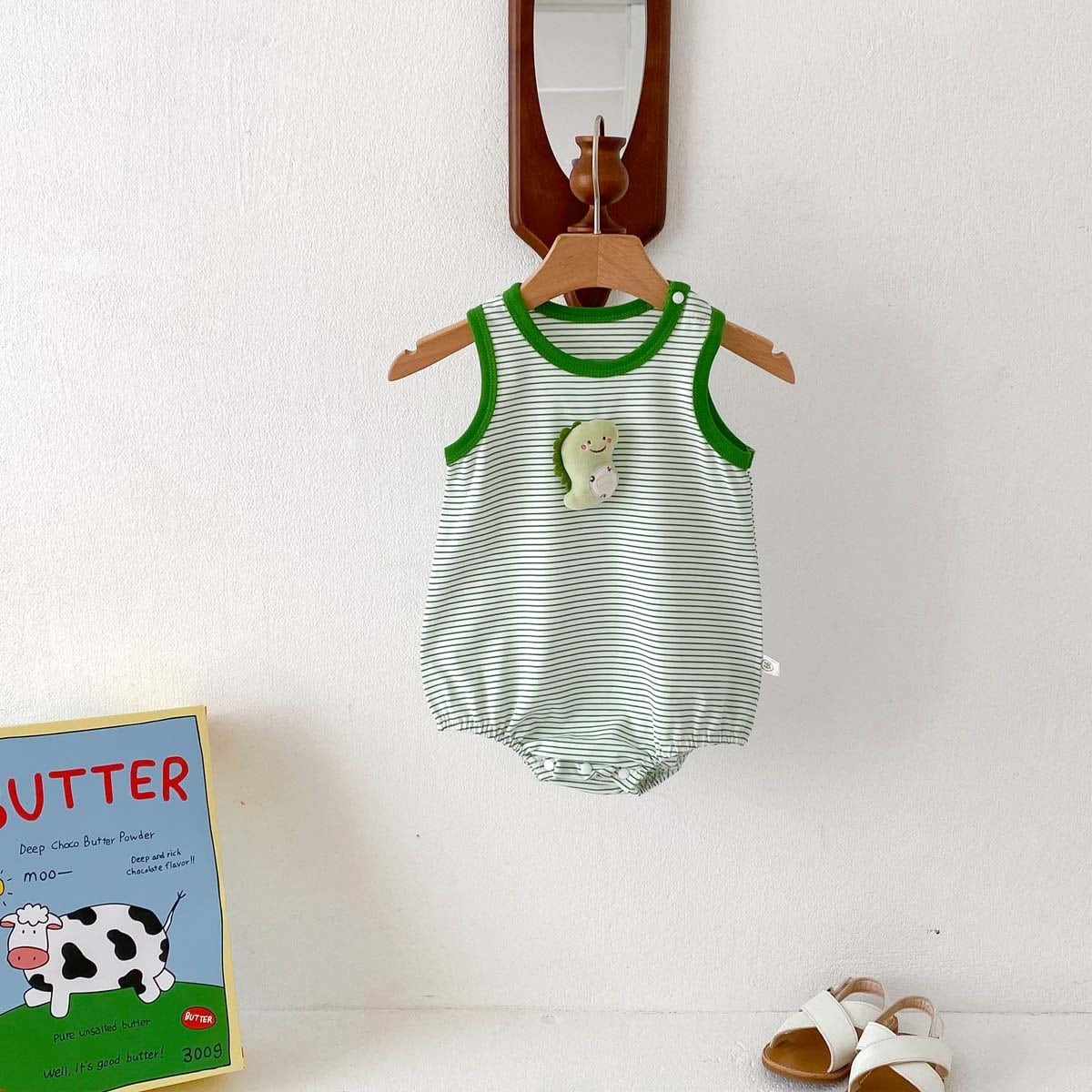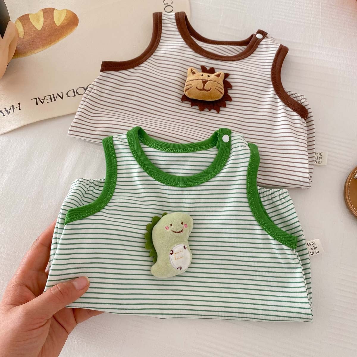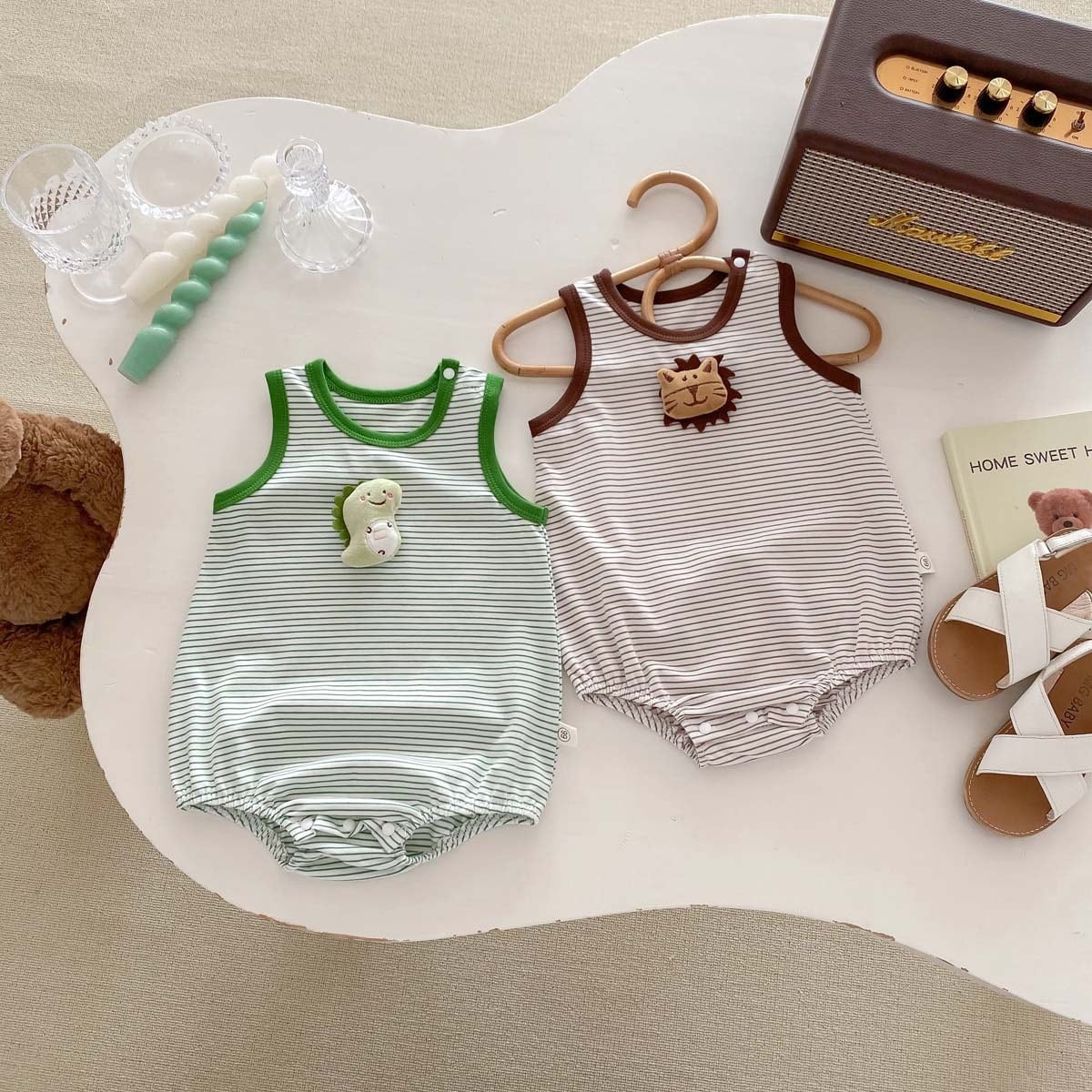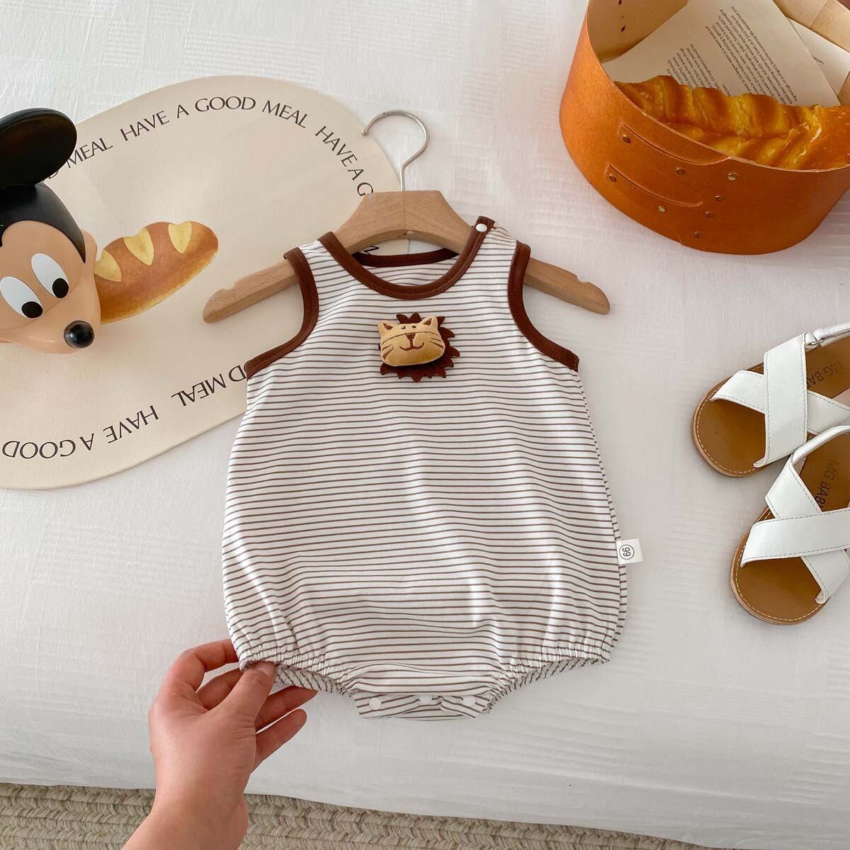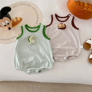 【BABY】夏新作 ボーダー動物柄ロンパース