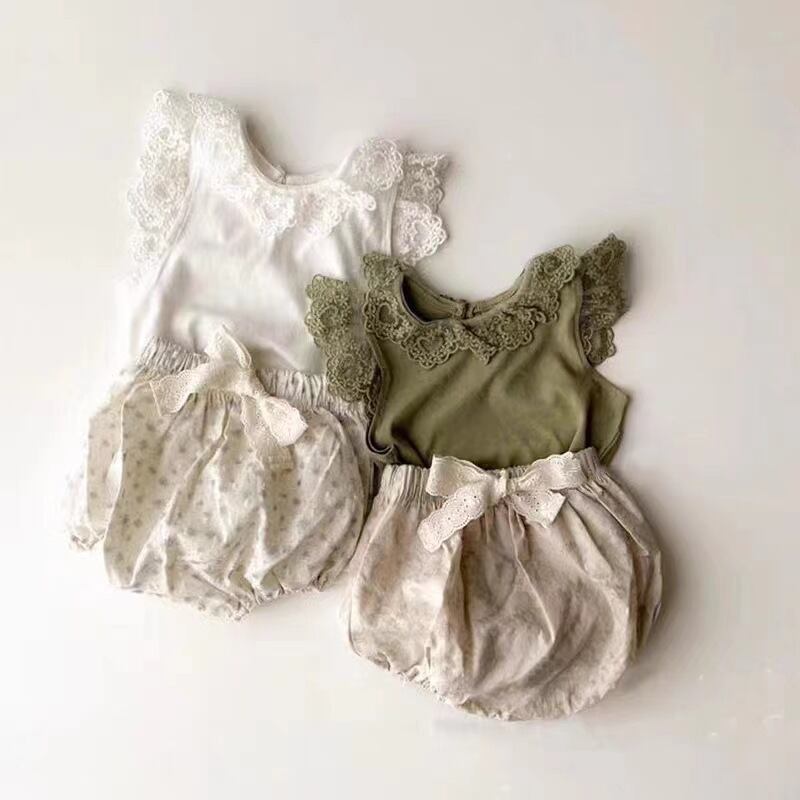 【BABY】夏新作 可愛いフリル袖ベスト、ショートパンツ