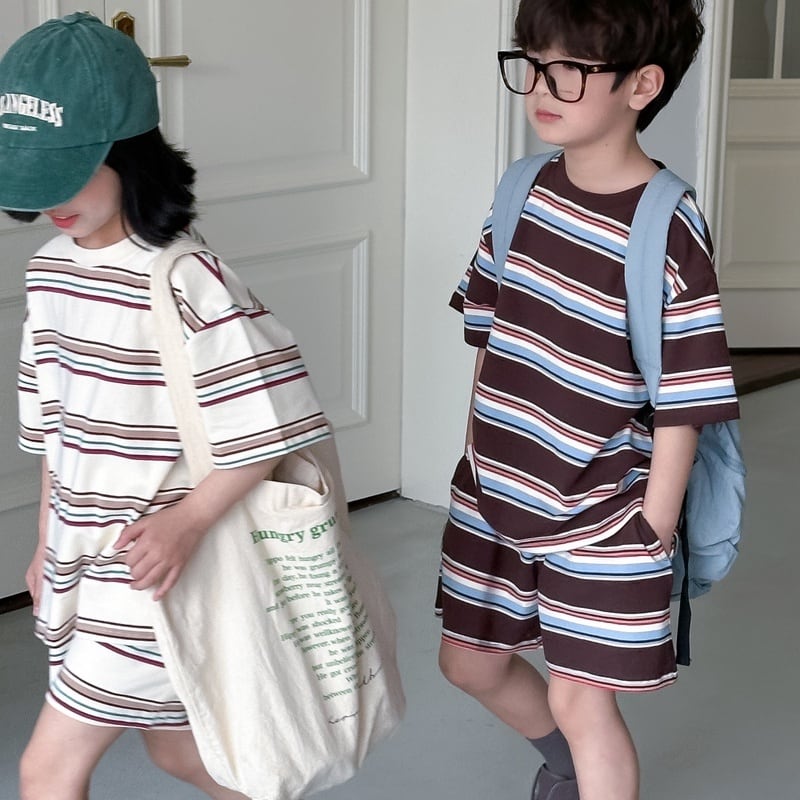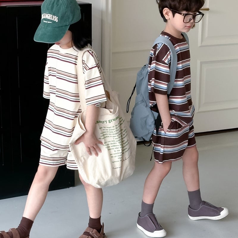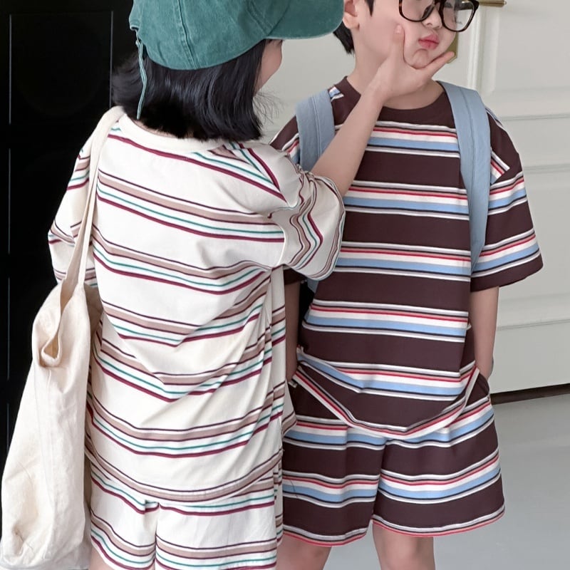 【KID】2024新作 オシャレボーダーTシャツ&パンツセット