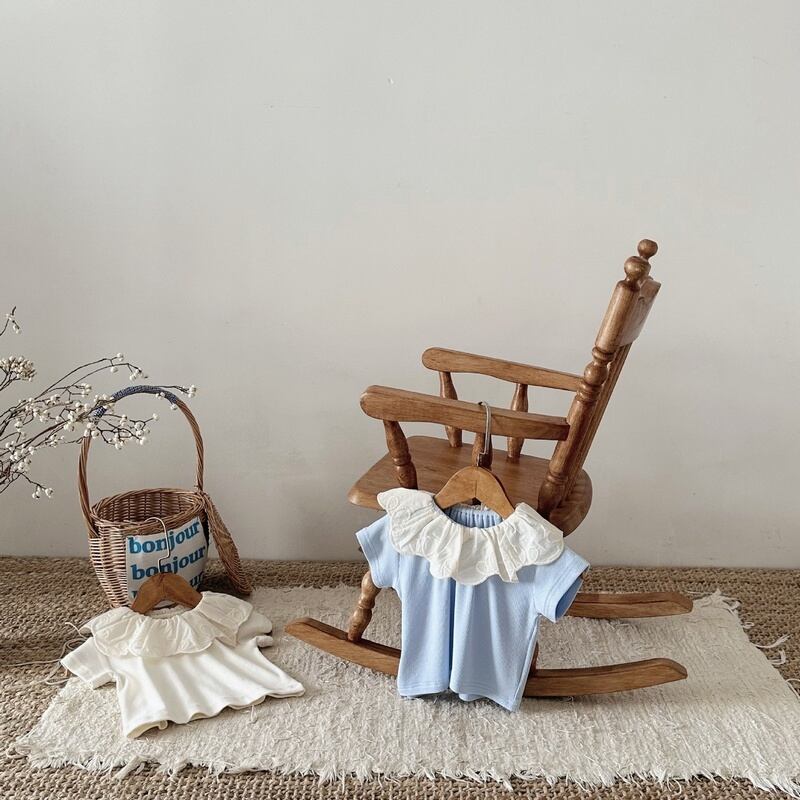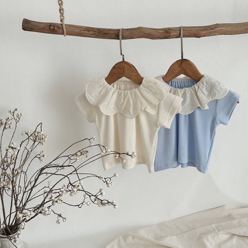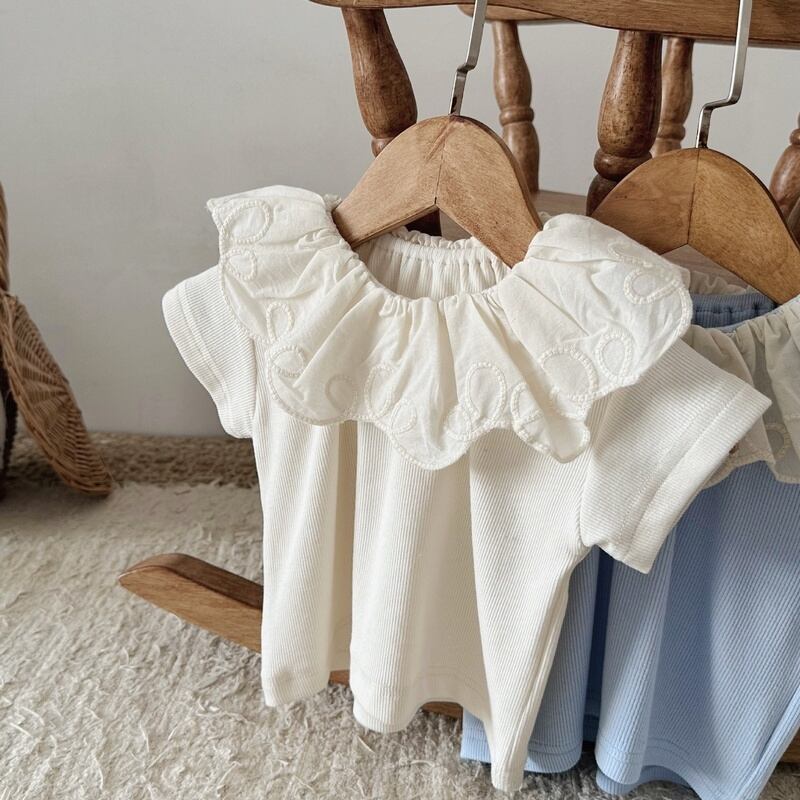 【BABY】韓国風 可愛い花柄レース襟シャツ