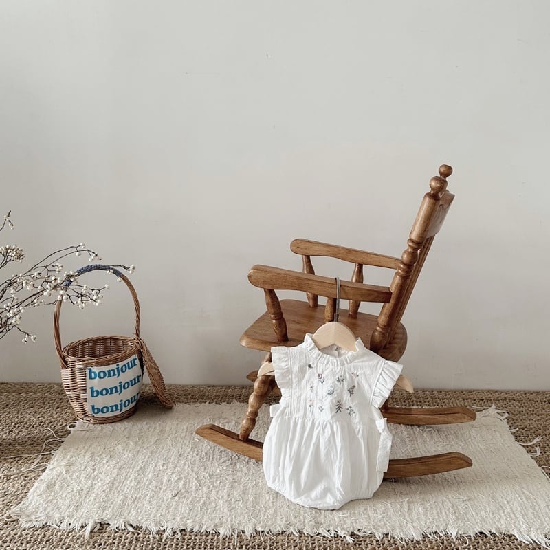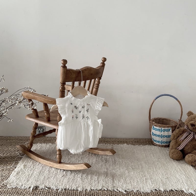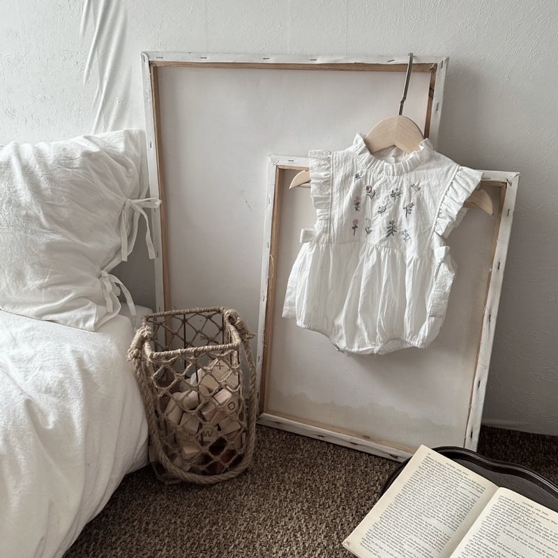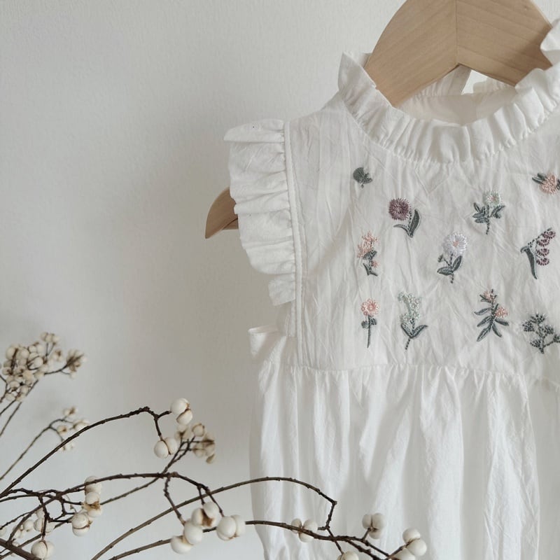 【BABY】夏新作 花柄刺繡ノースリーブロンパース