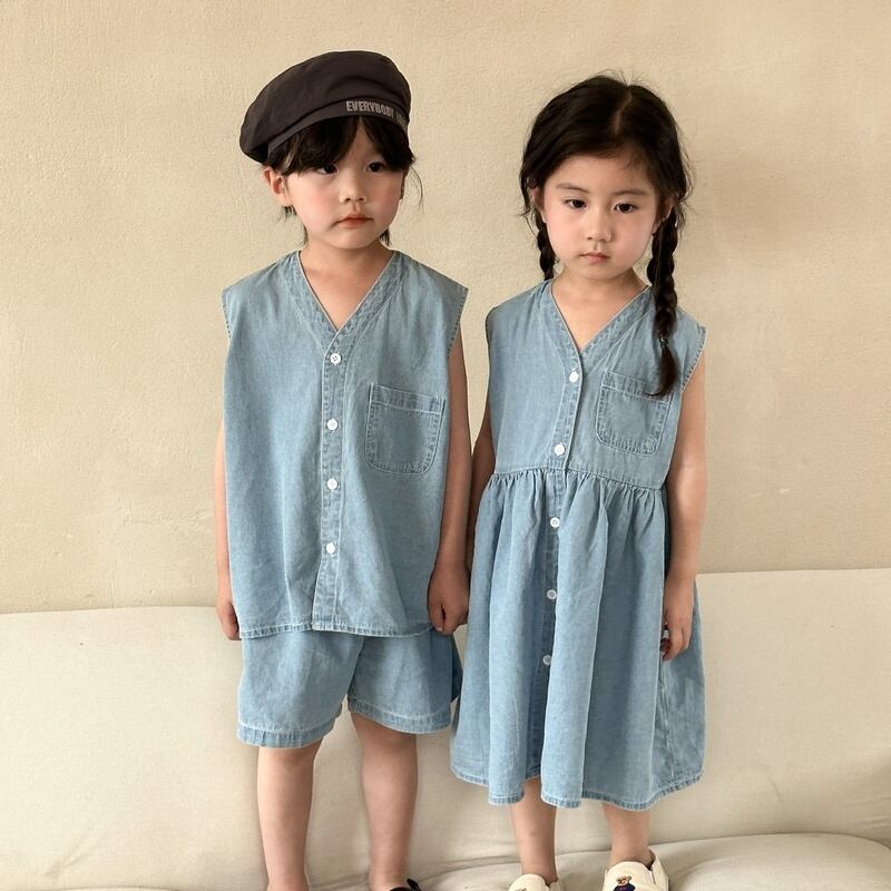 【BABY&KID】韓国風 デニムセットアップ、ワンピース