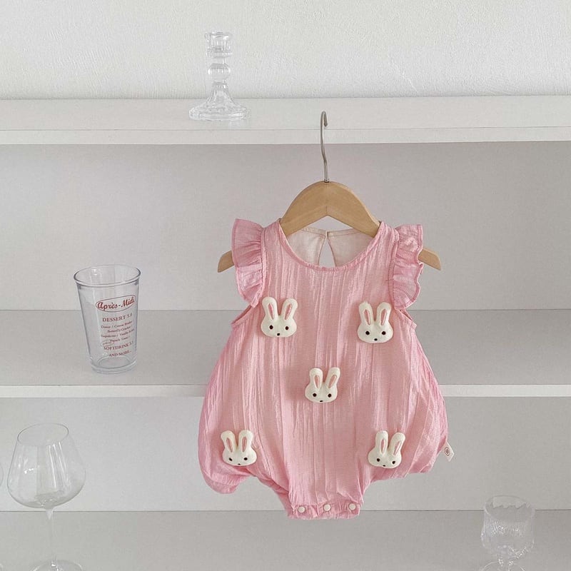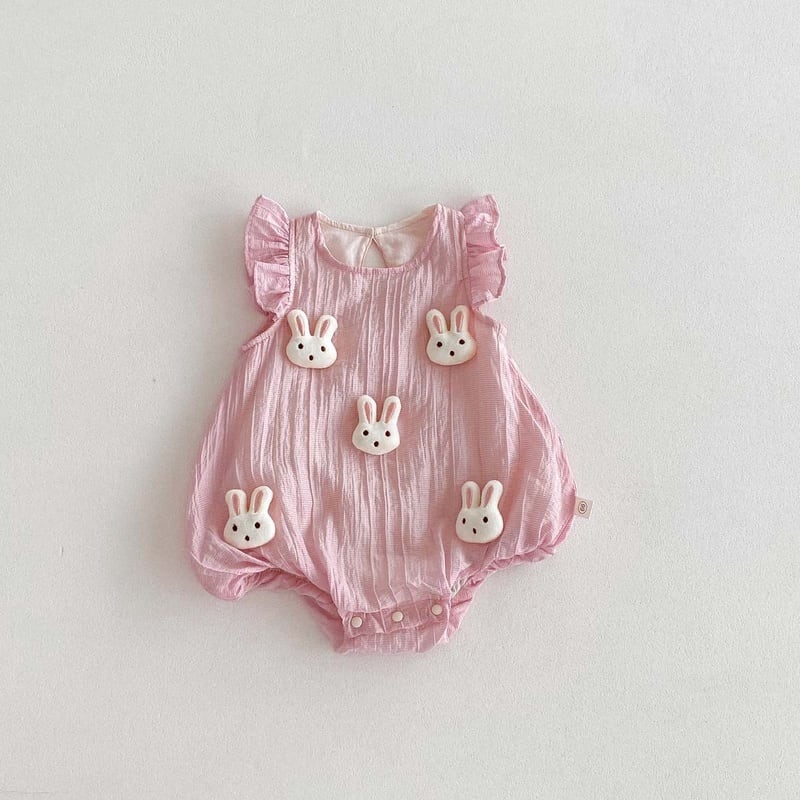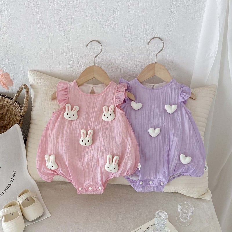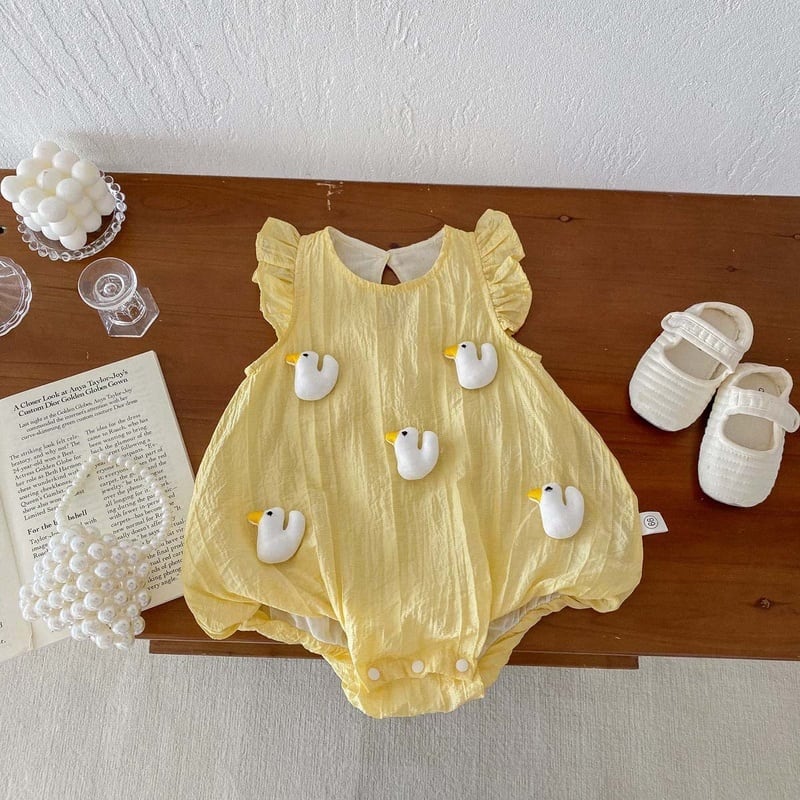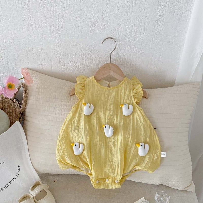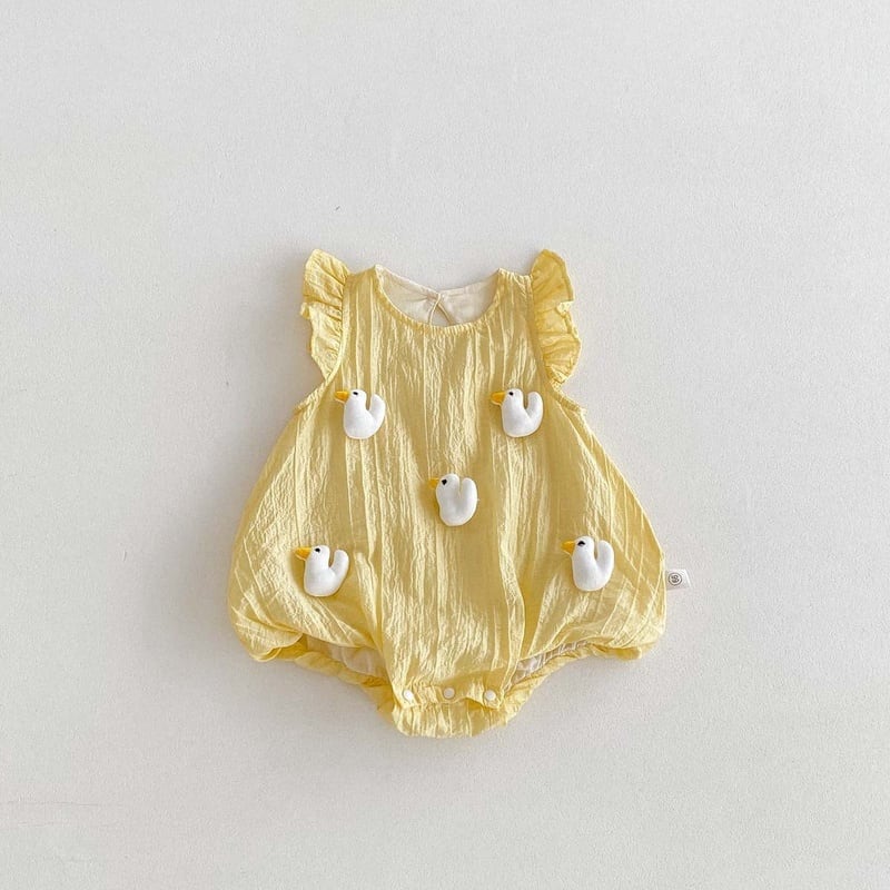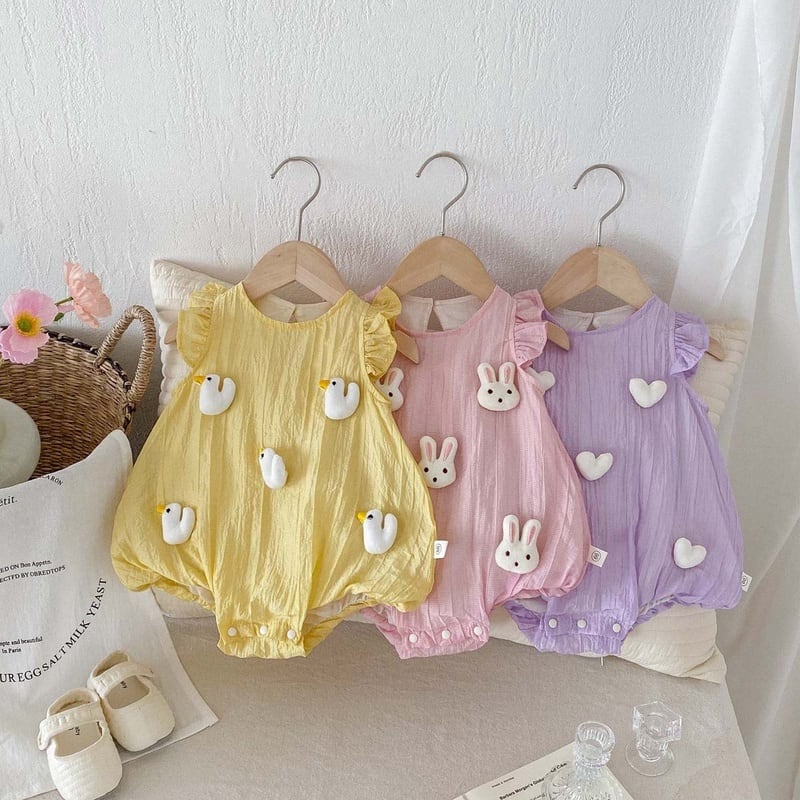 【BABY】夏新作 フレアしわ動物柄ロンパース