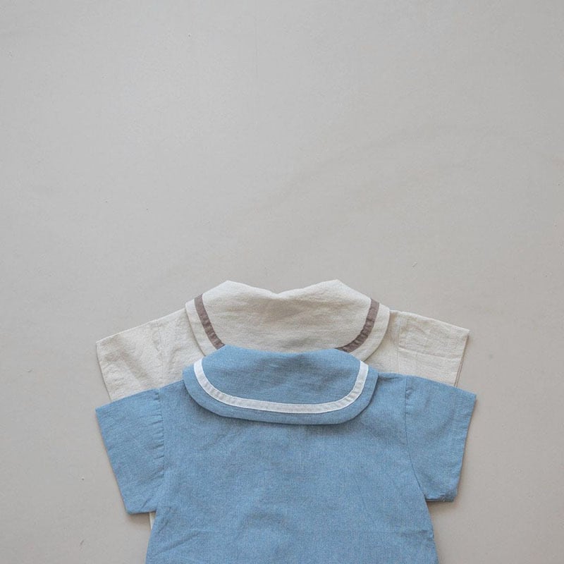 【BABY】韓国風 セーラー無地ロンパース
