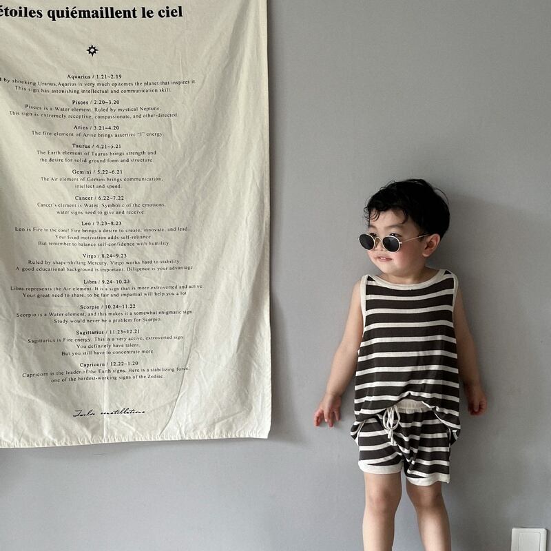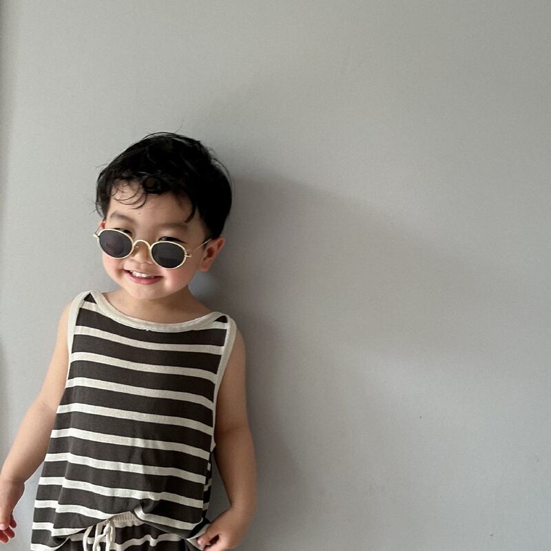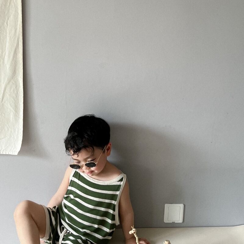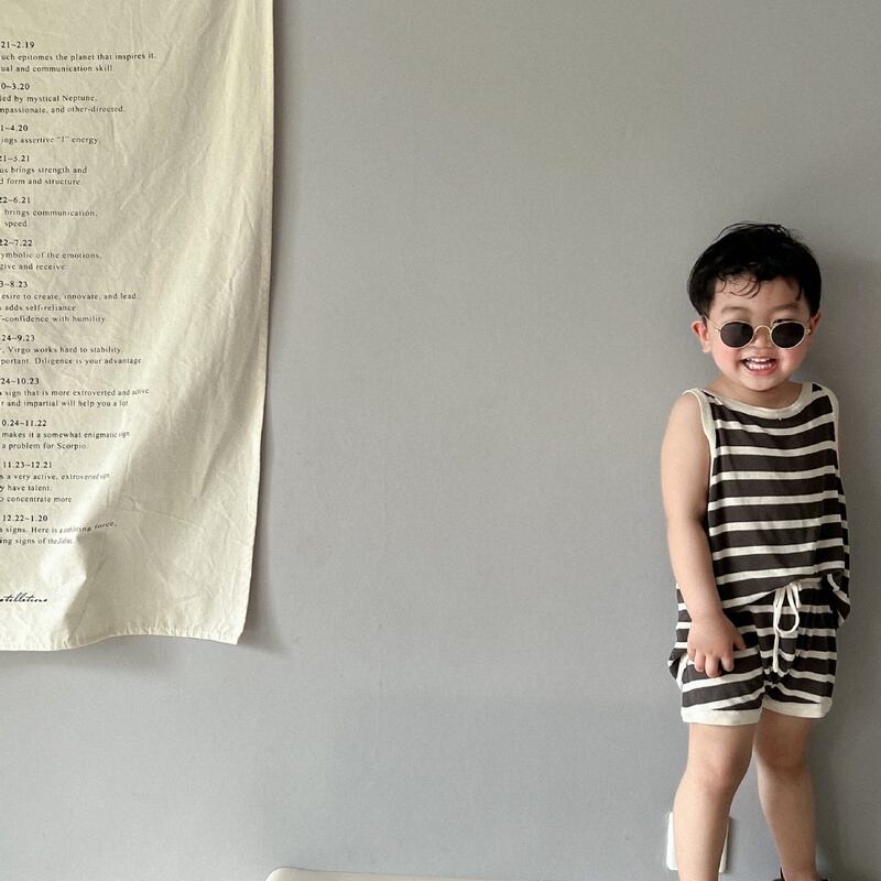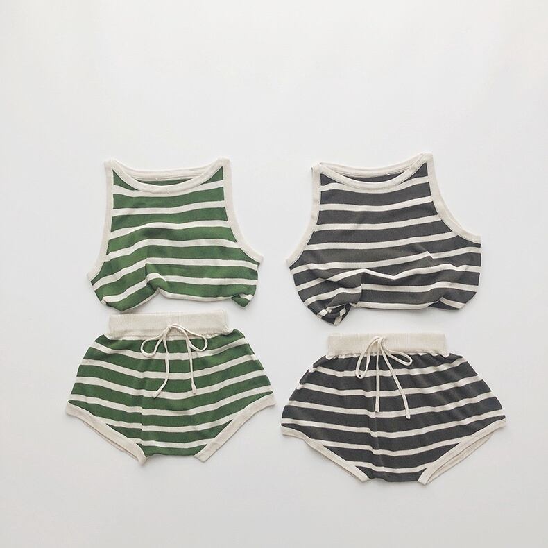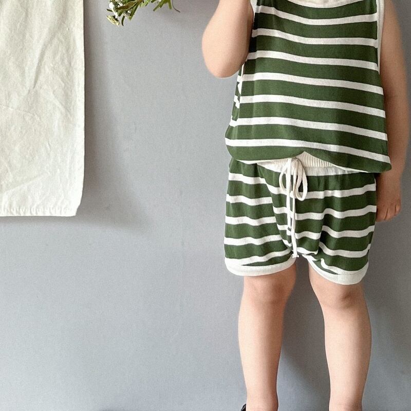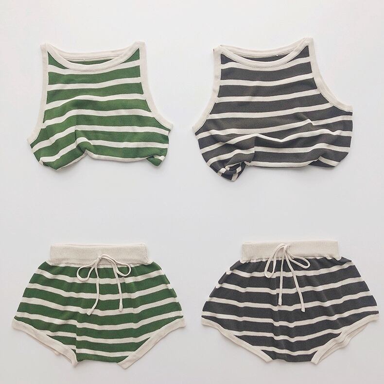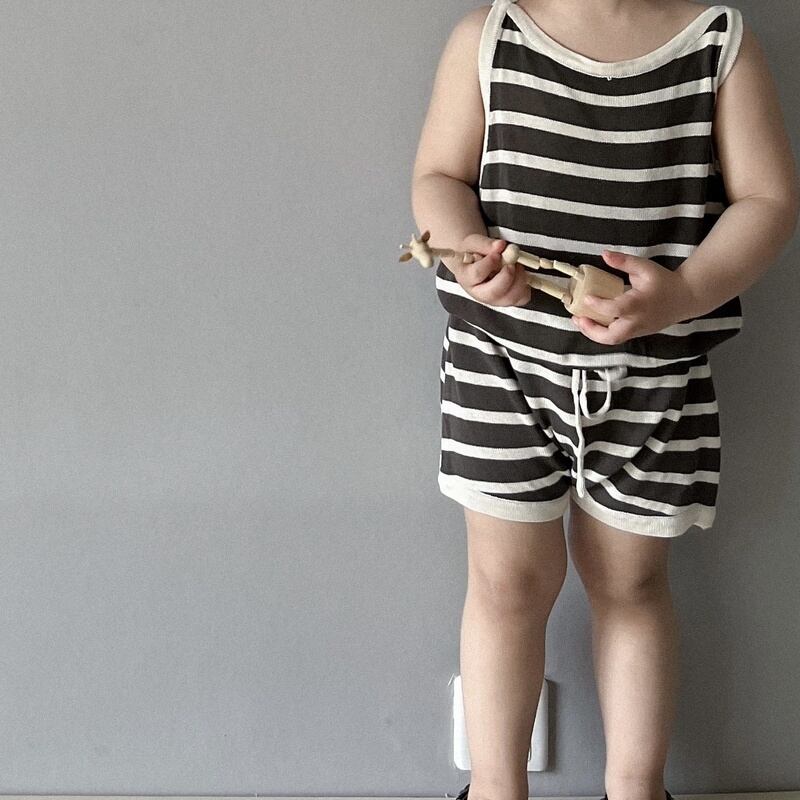 【BABY&KID】夏新作 ボーダーノースリーブシャツ ショートパンツ