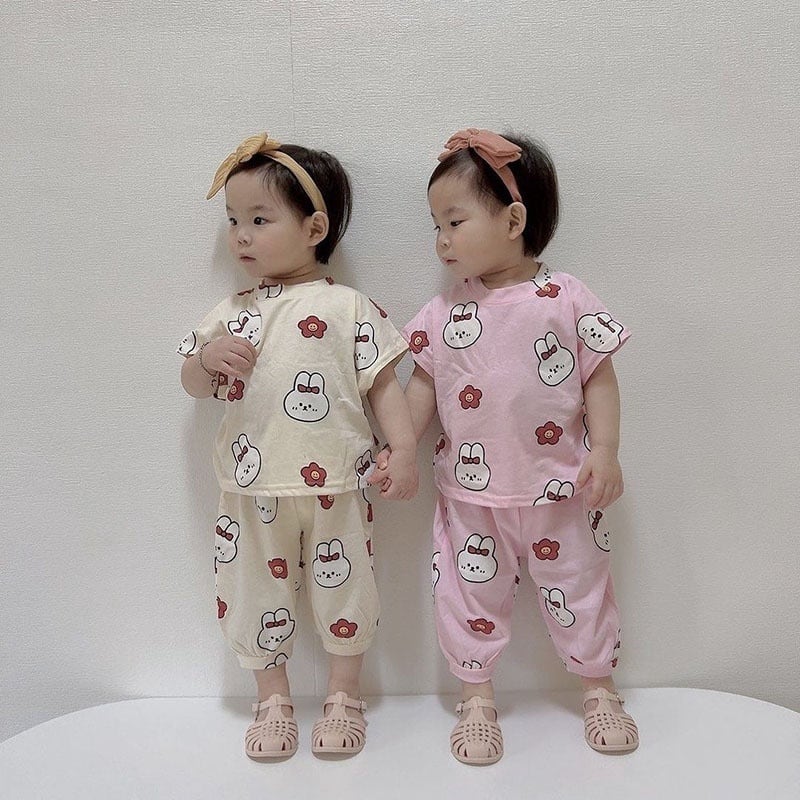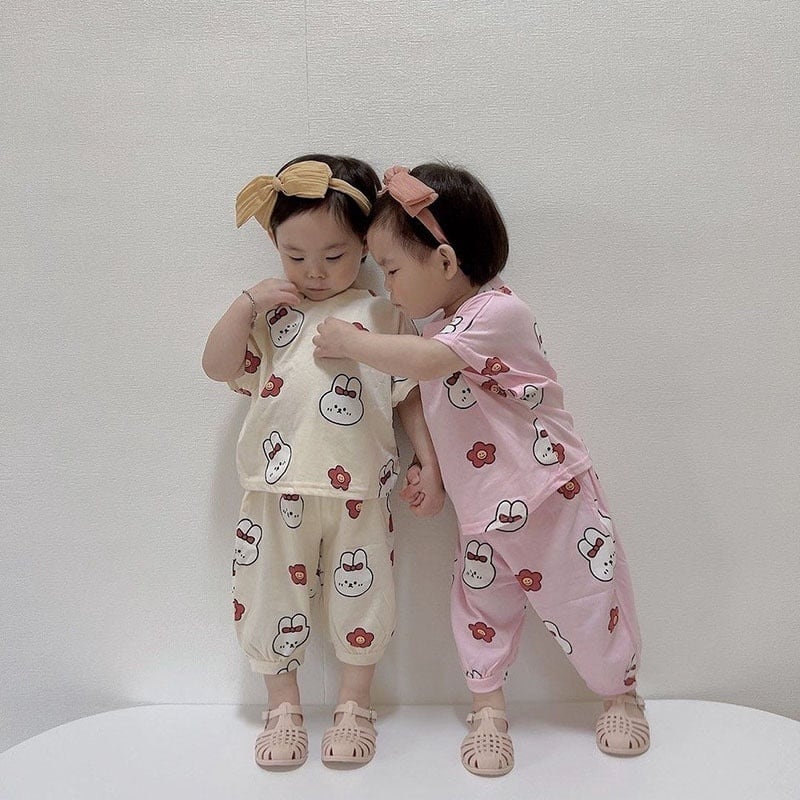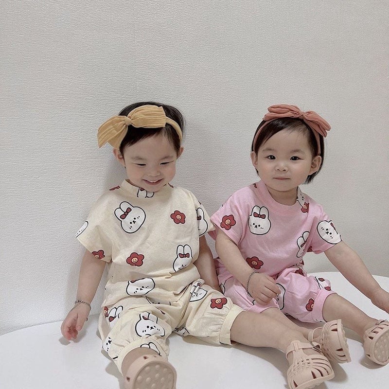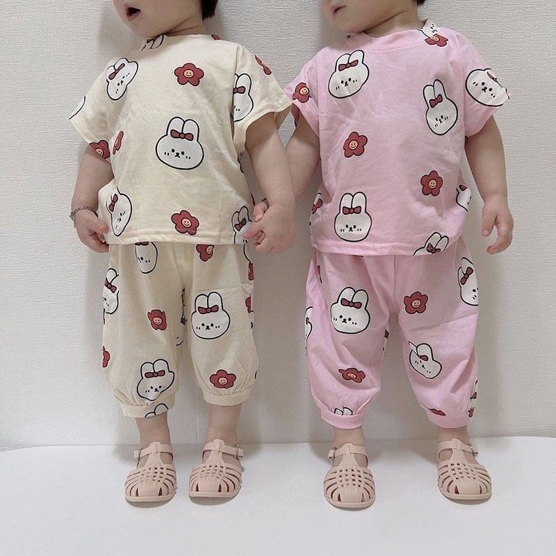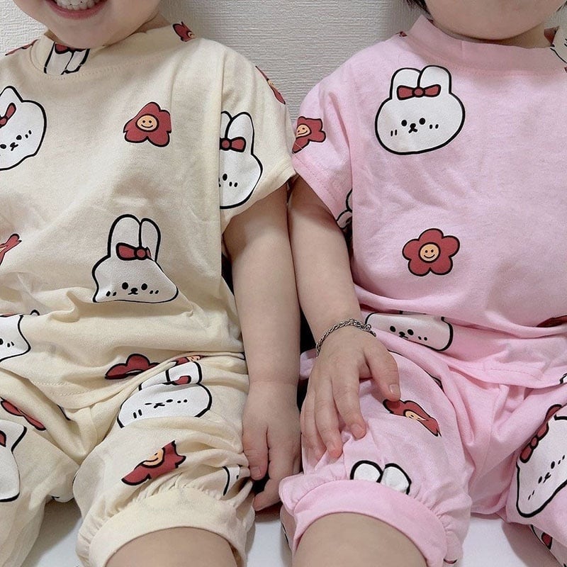 【BABY】夏新作 カートゥーウサギ柄セットアップ