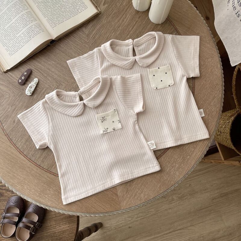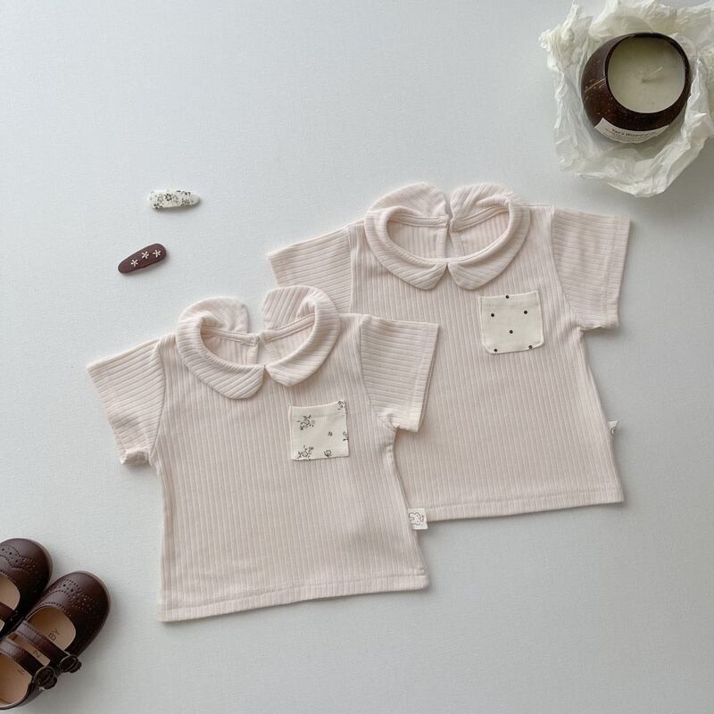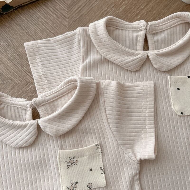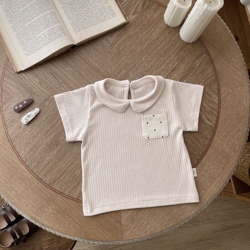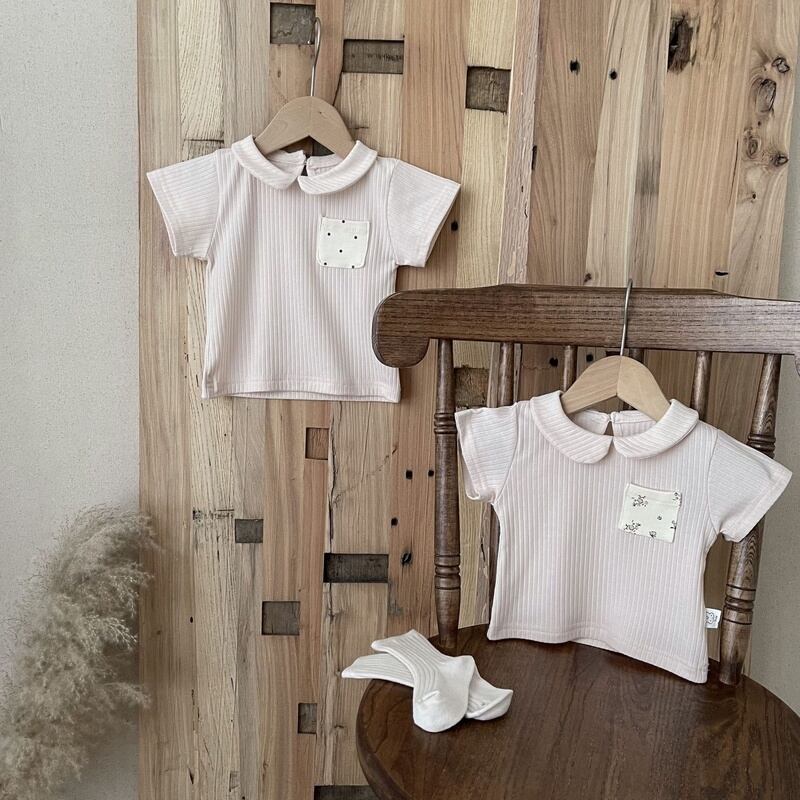 【BABY】韓国風 ストライプポケット付きtシャツ