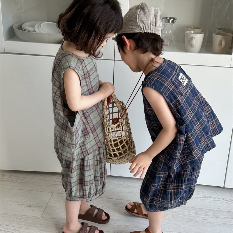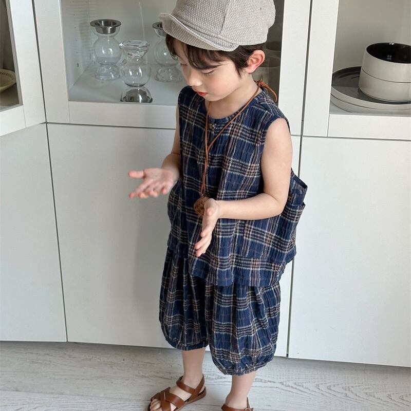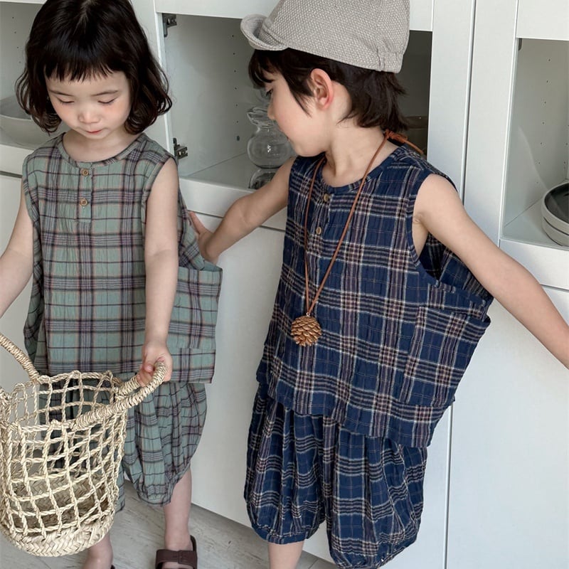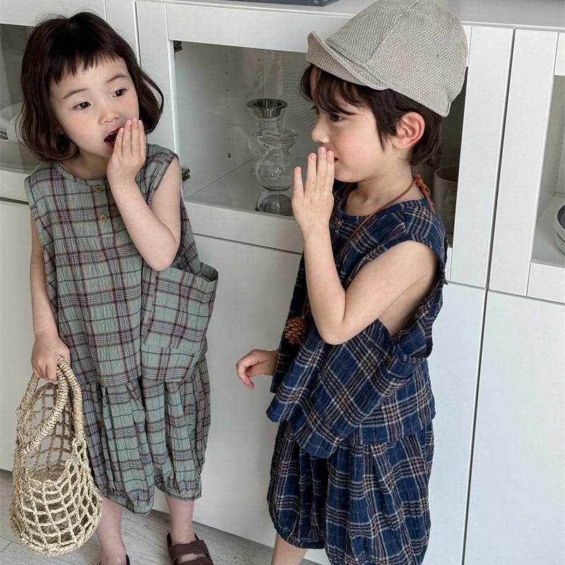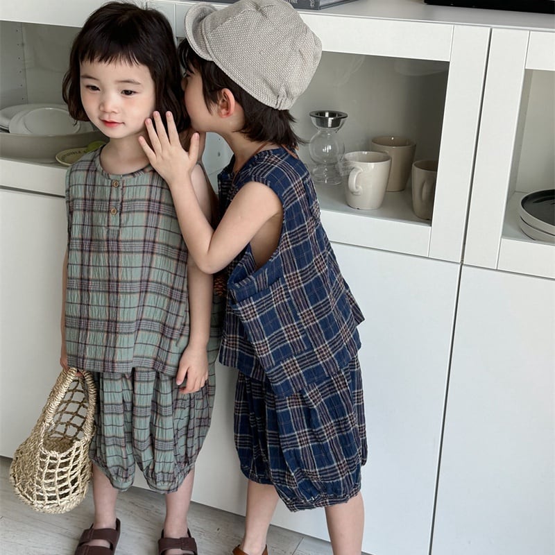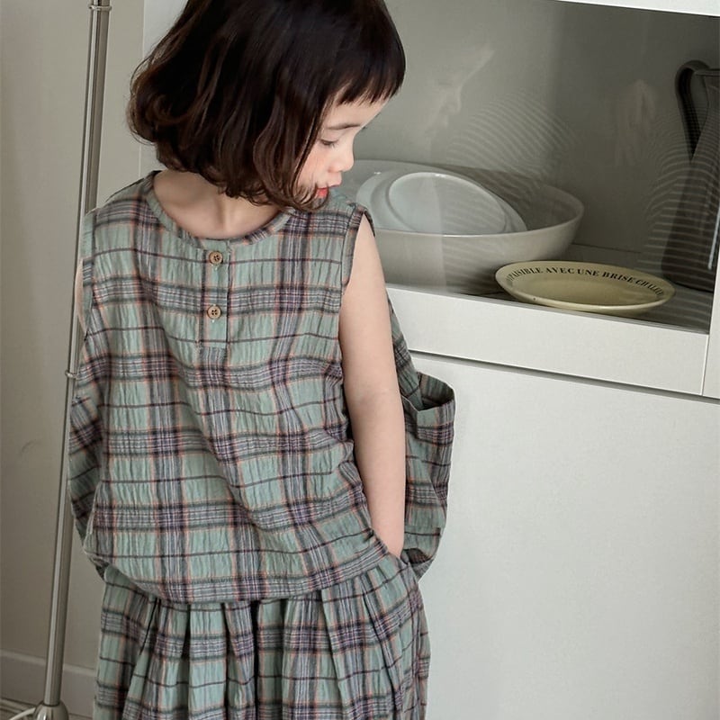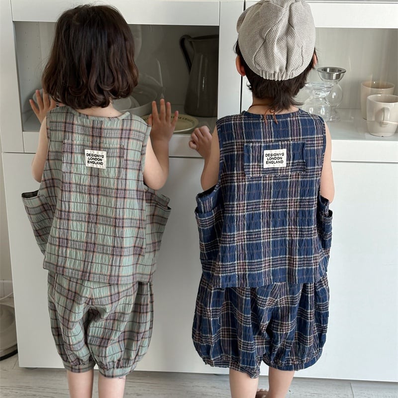 【BABY&KID】夏新作 チェック柄ノースリーブセットアップ