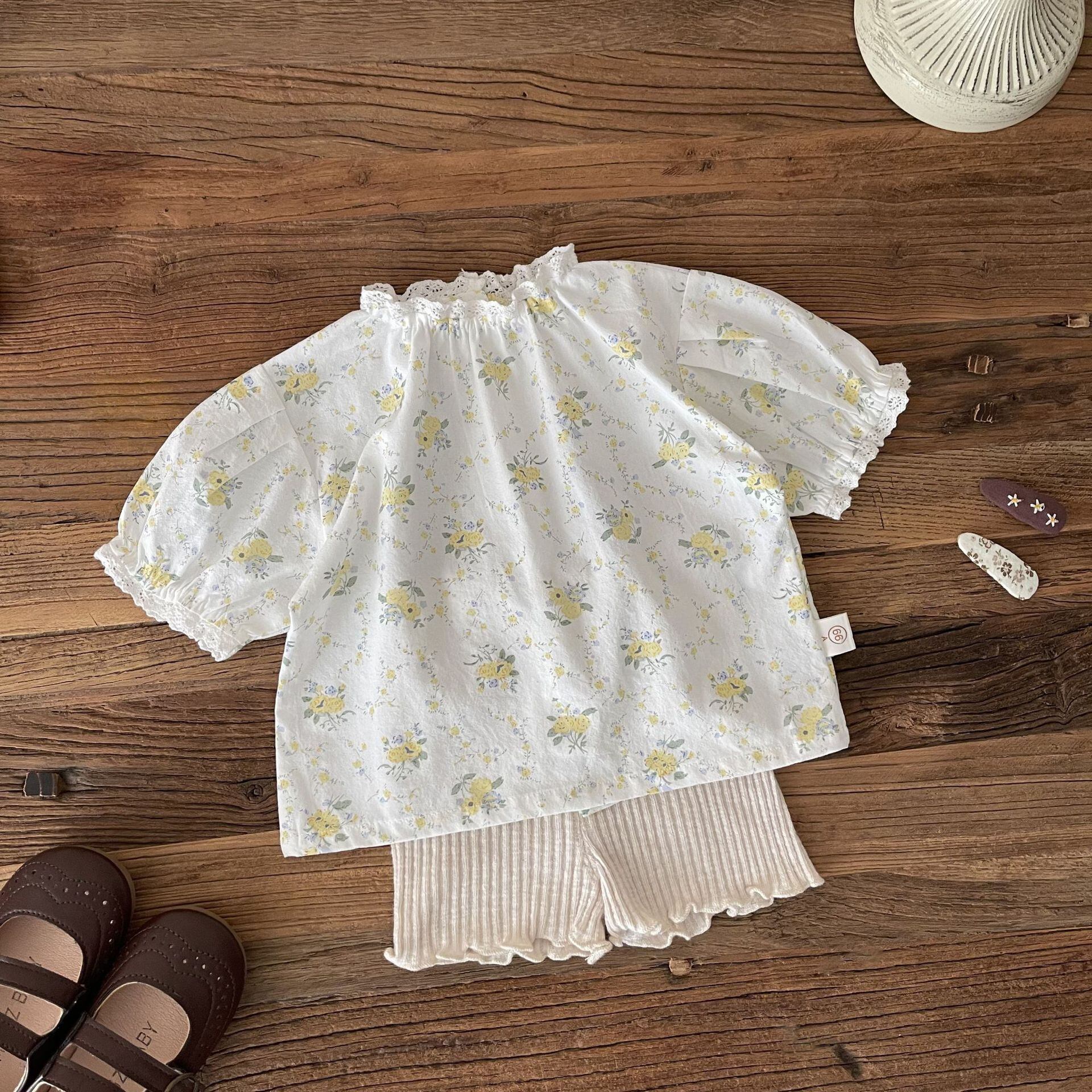 【BABY】花柄レースパフスリーブ半袖ブラウス