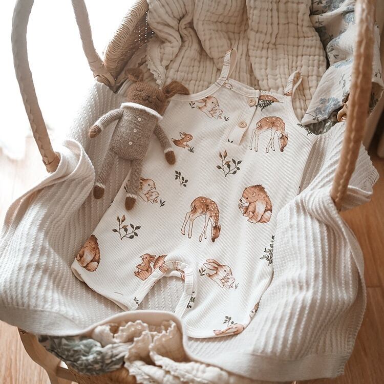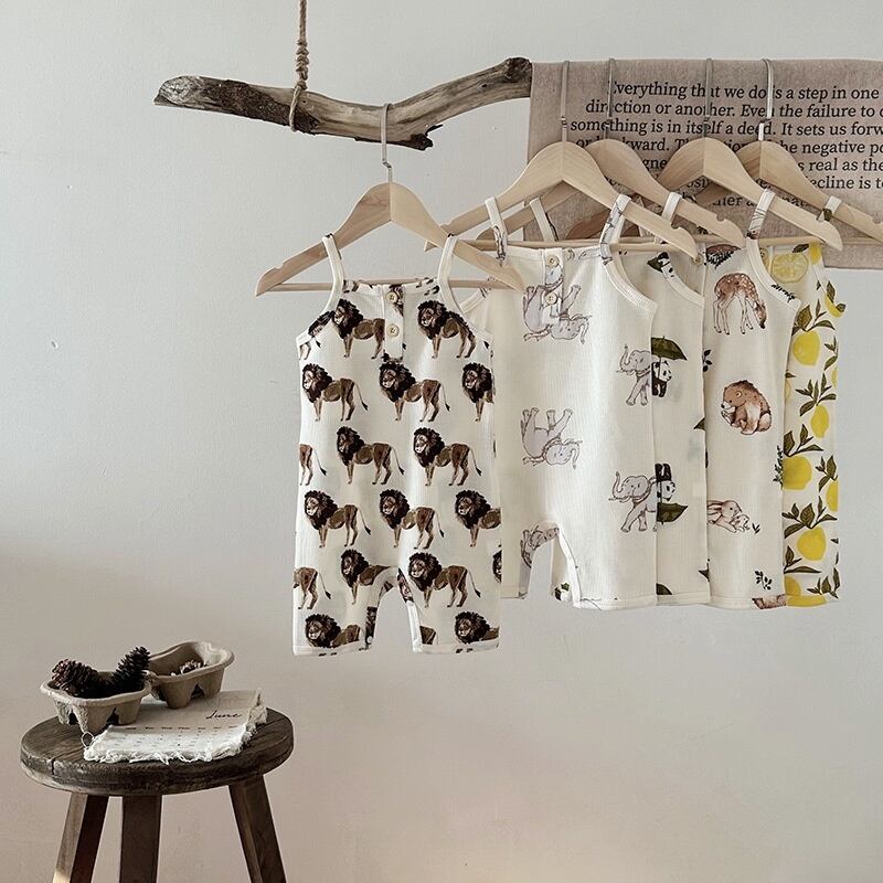 【BABY】夏新作 動物柄ワッフルサロペット