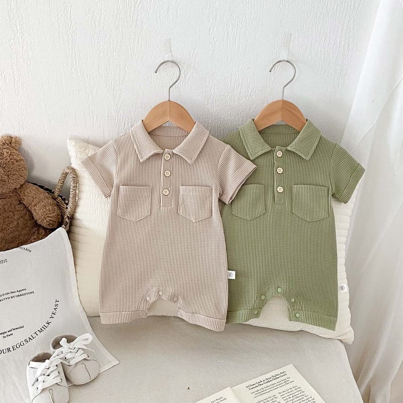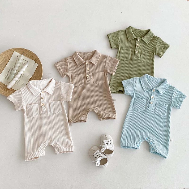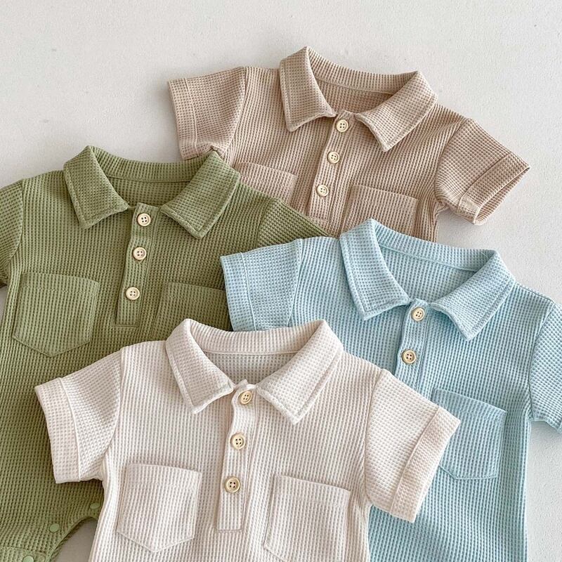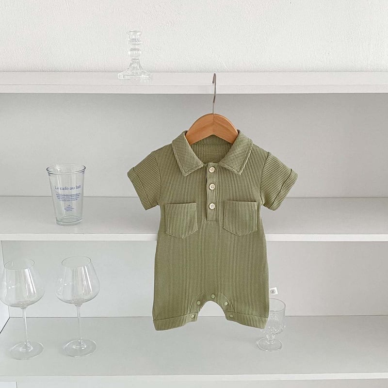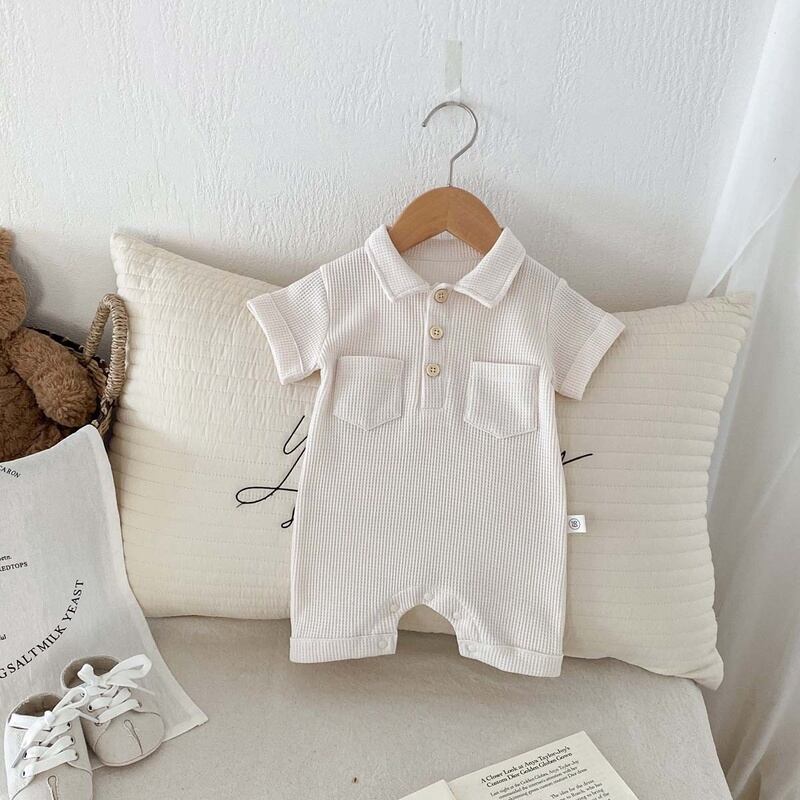 【BABY】夏新作 ポケット付き半袖オールインワン