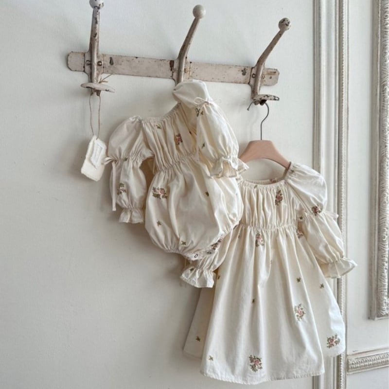 【BABY&KID】レトロパフスリーブロンパース、ワンピース