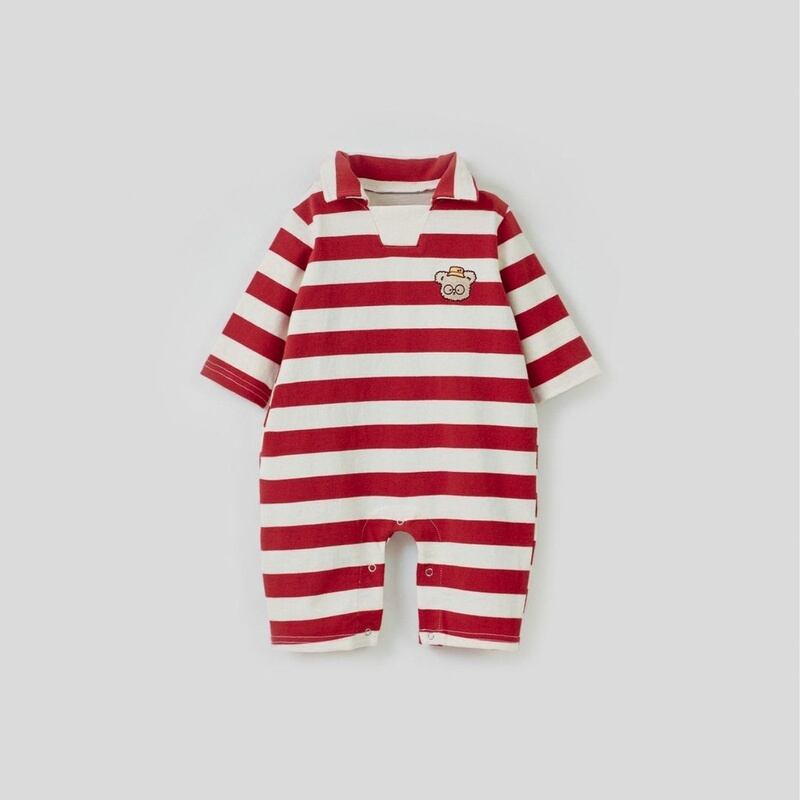 【BABY】秋新作 可愛いクマボーダーオールインワン