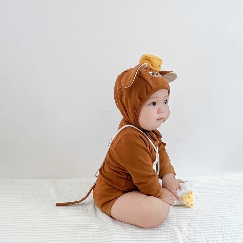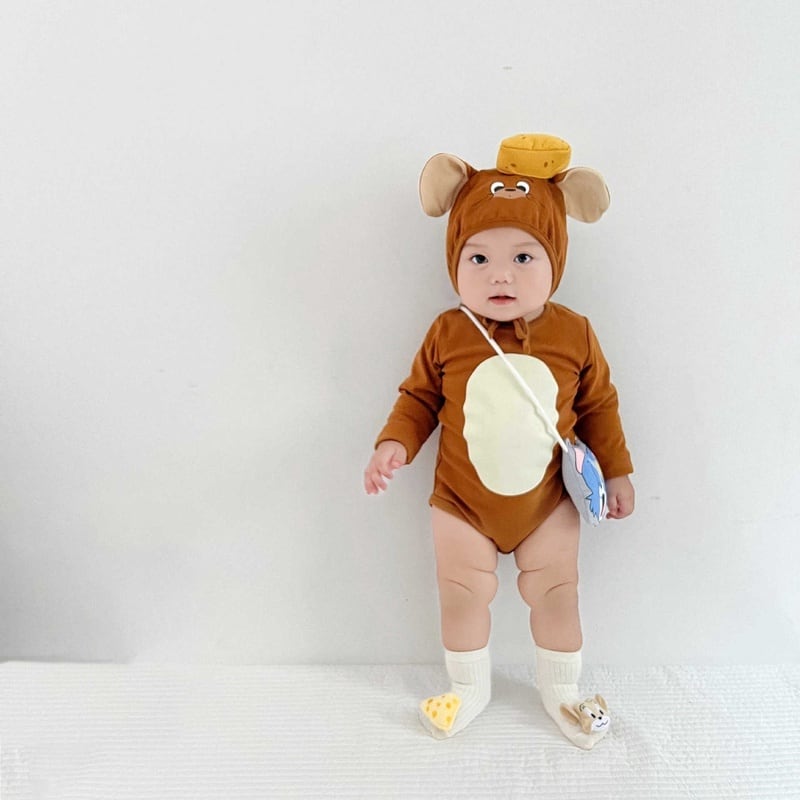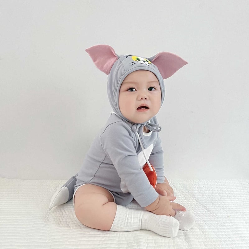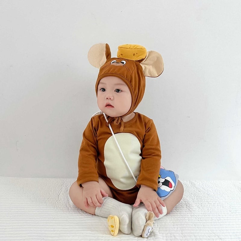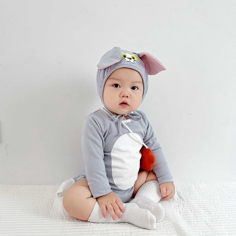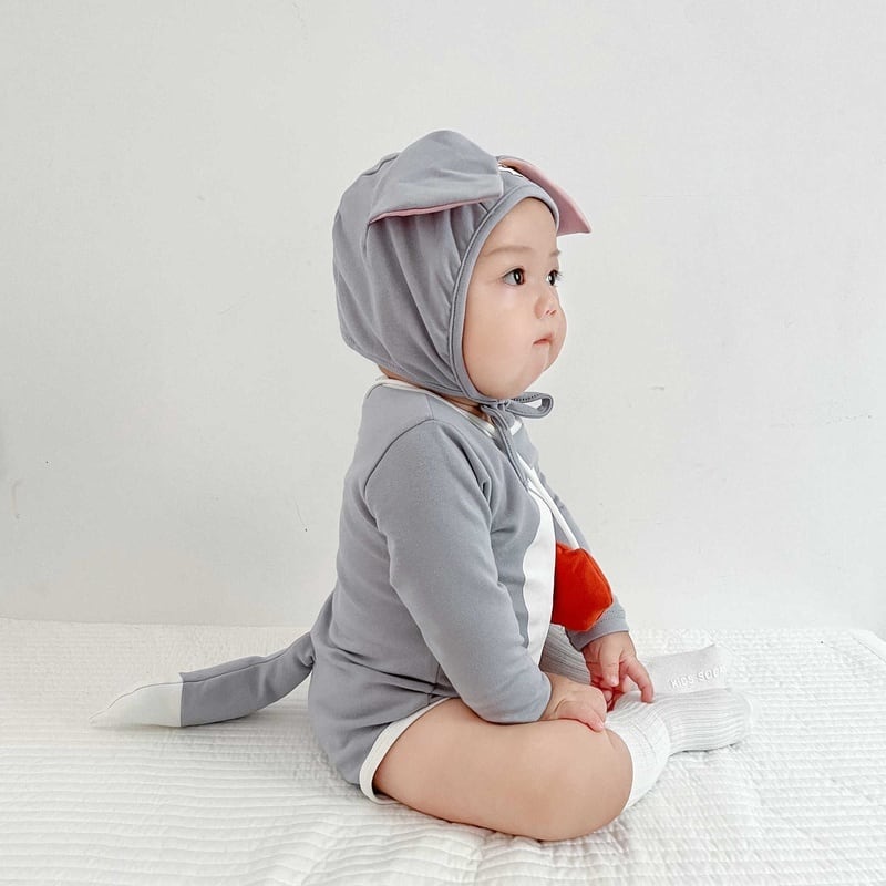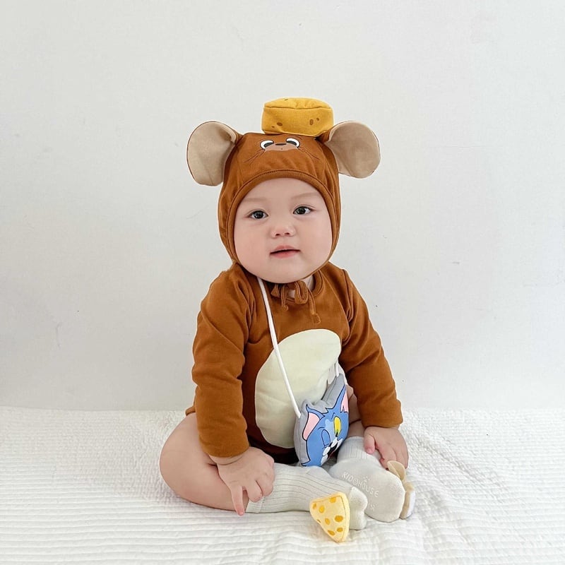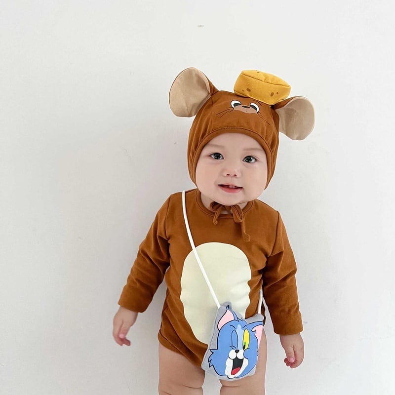 【BABY】韓国風 ネコ、ネズミロンパース