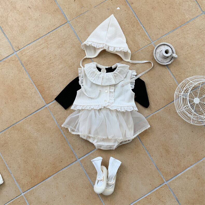 【BABY】韓国風秋新作レースベスト&ブルマセット