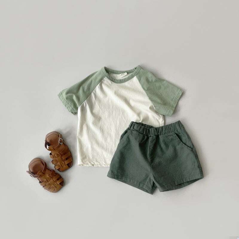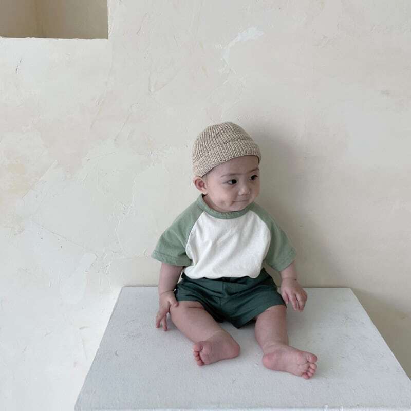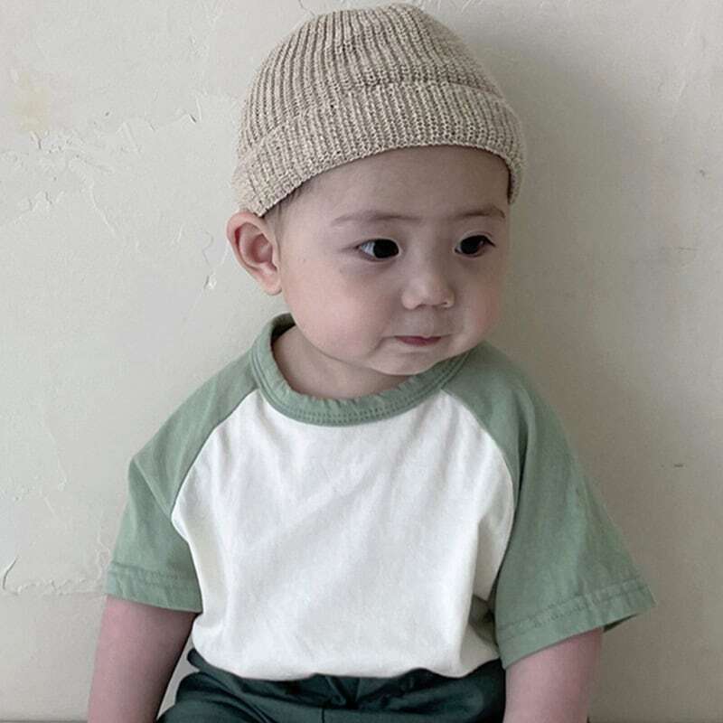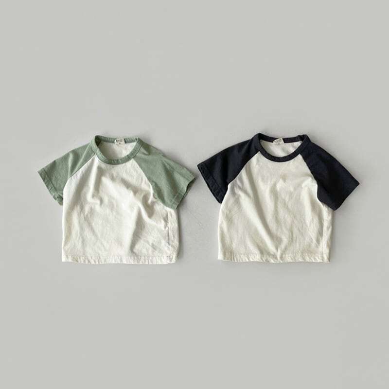 【BABY】韓国風 ミニマリズムバイカラーTシャツ