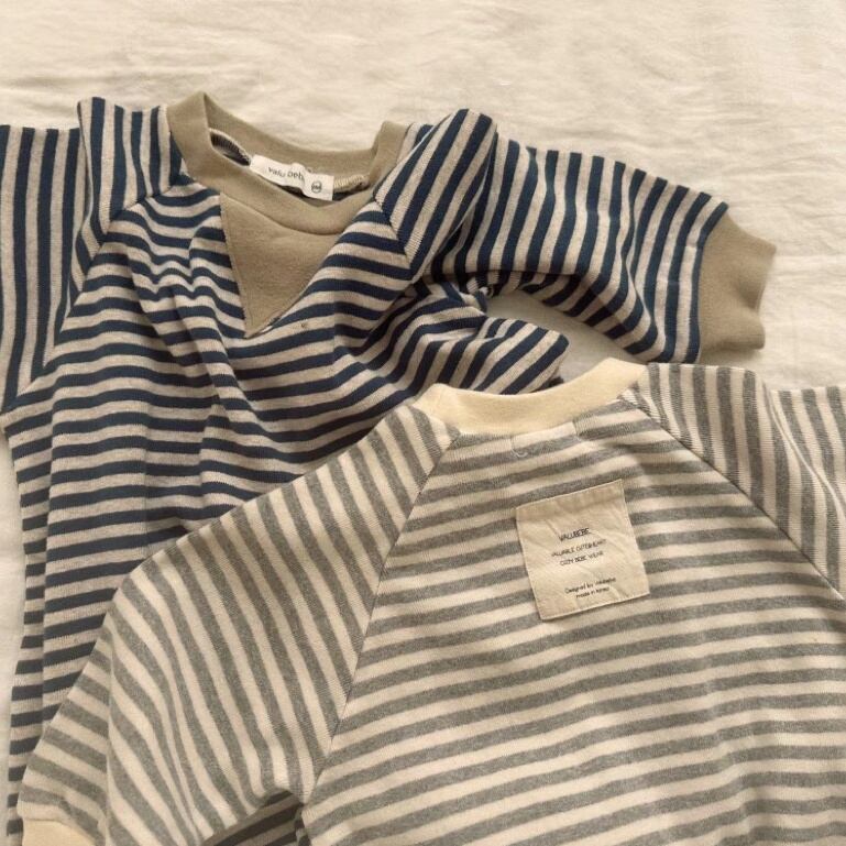 【BABY】秋新作 ボーダー柄ロンパース