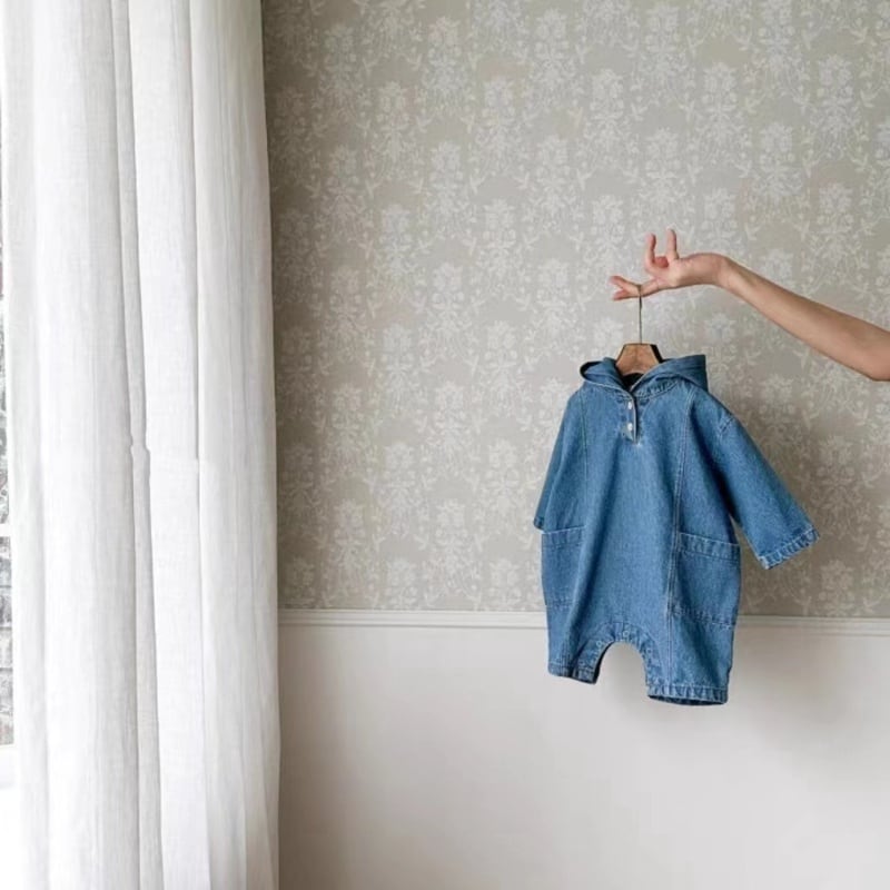 【BABY】デニム帽子付きオールインワン