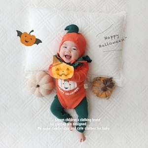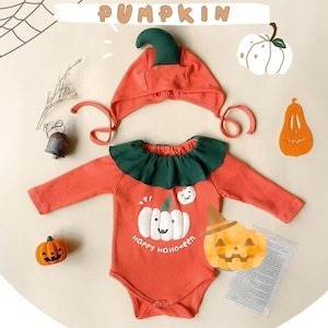 【BABY】ハロウィン 可愛いカボチャ柄 ロンパース