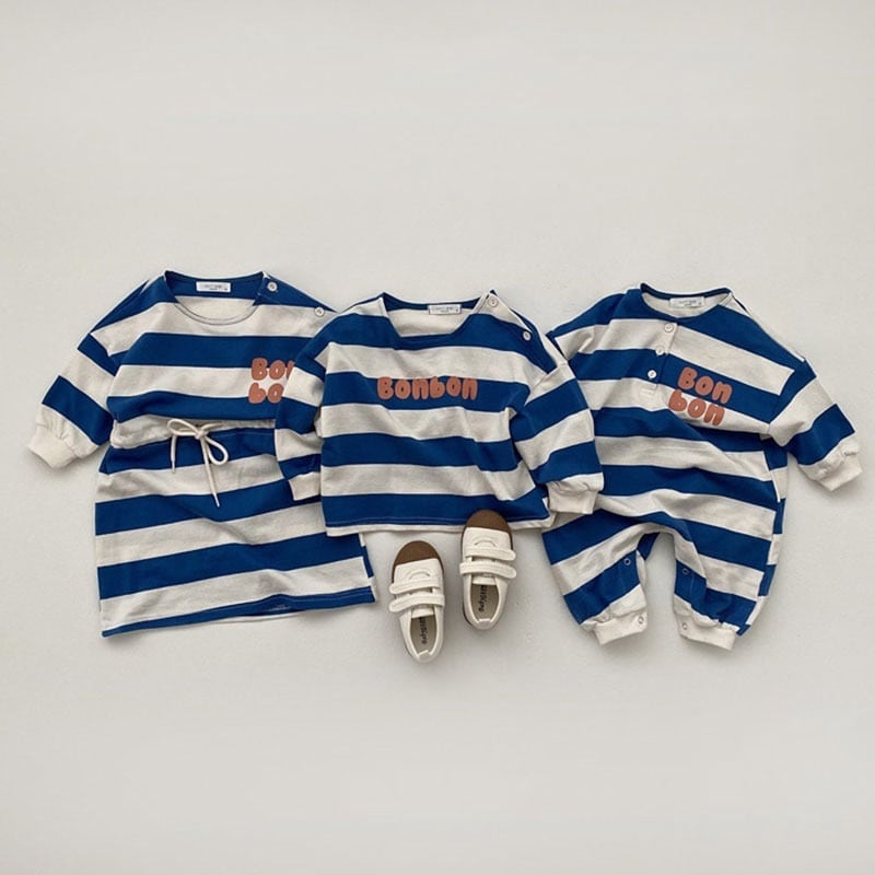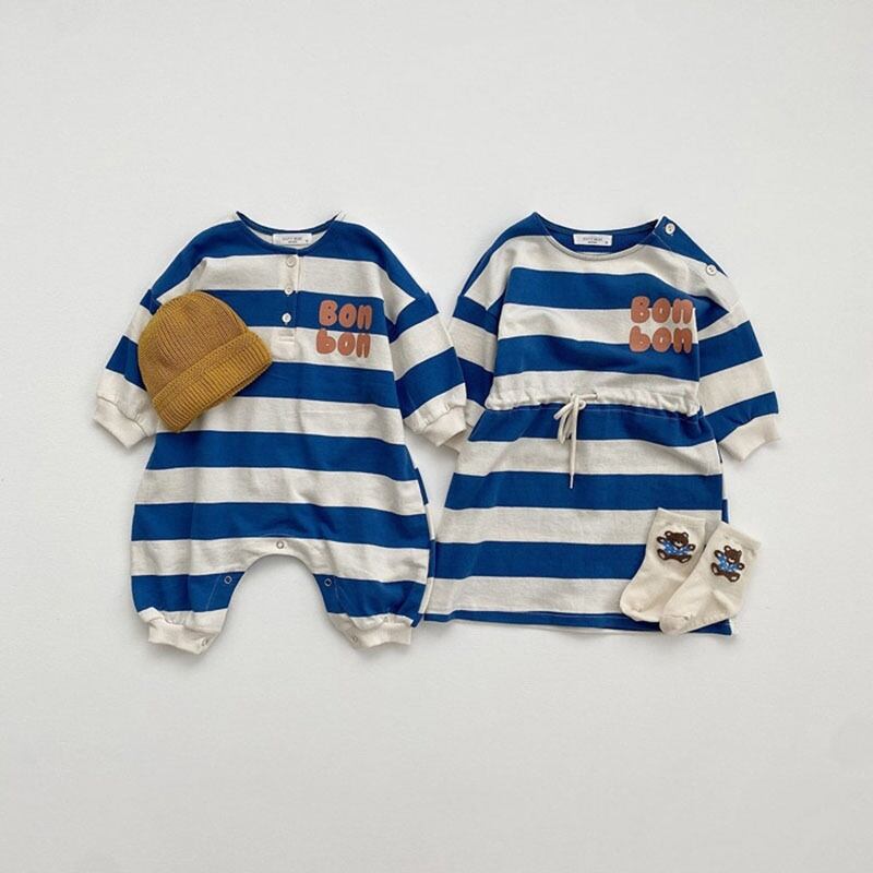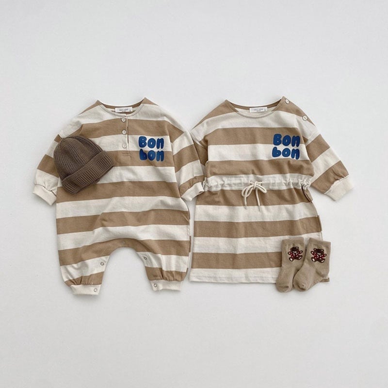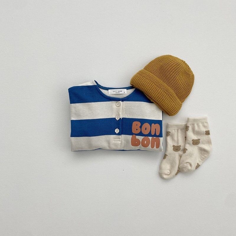 【BABY】秋新作 BONBONボーダー柄ロンパース