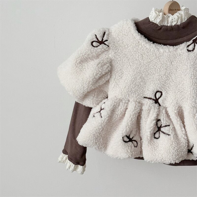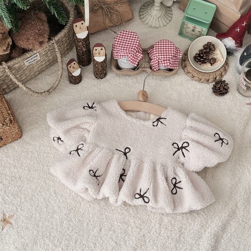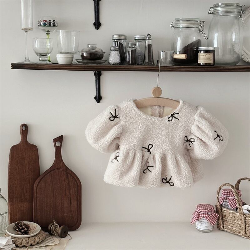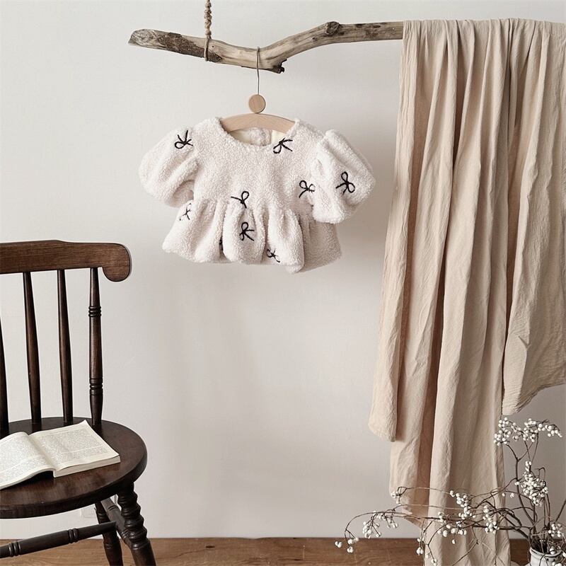 【BABY】蝶結び刺繡もこもこトップス