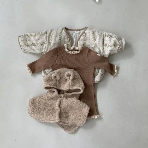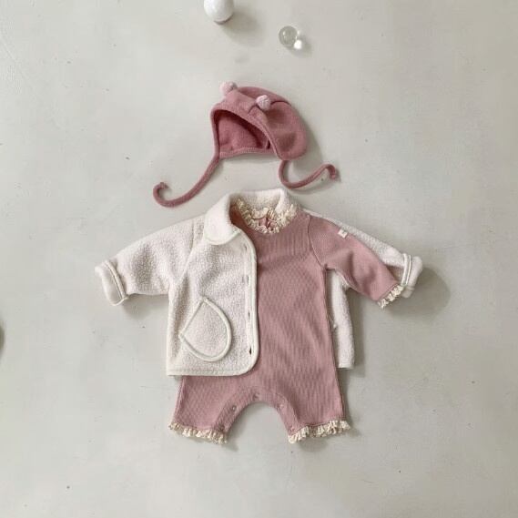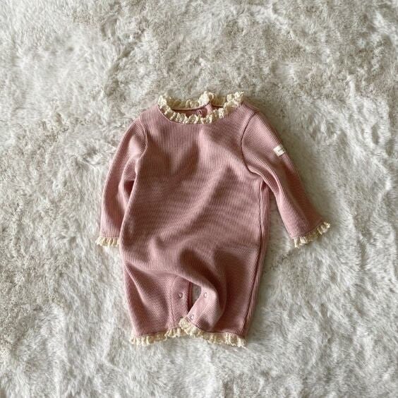 【BABY】フリル襟ワッフルロンパース