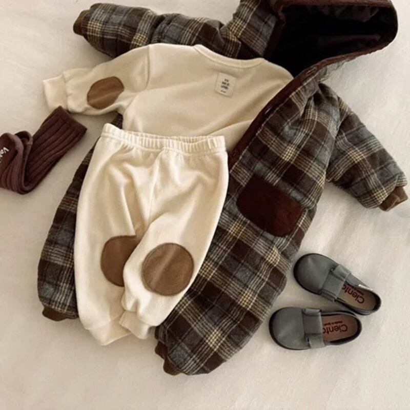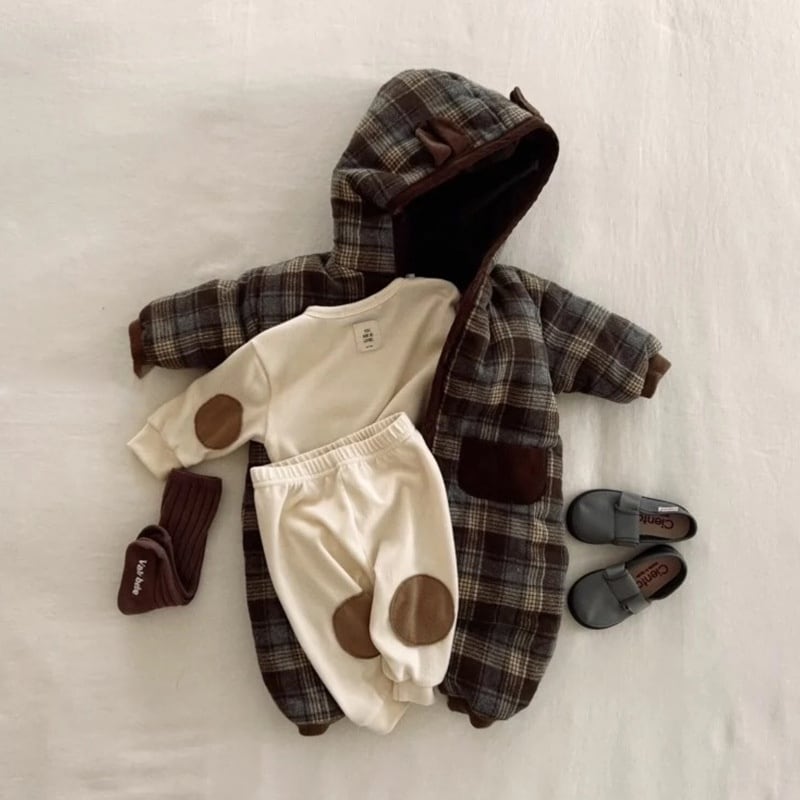 【BABY】韓国風 暖かい帽子付きオールインワン