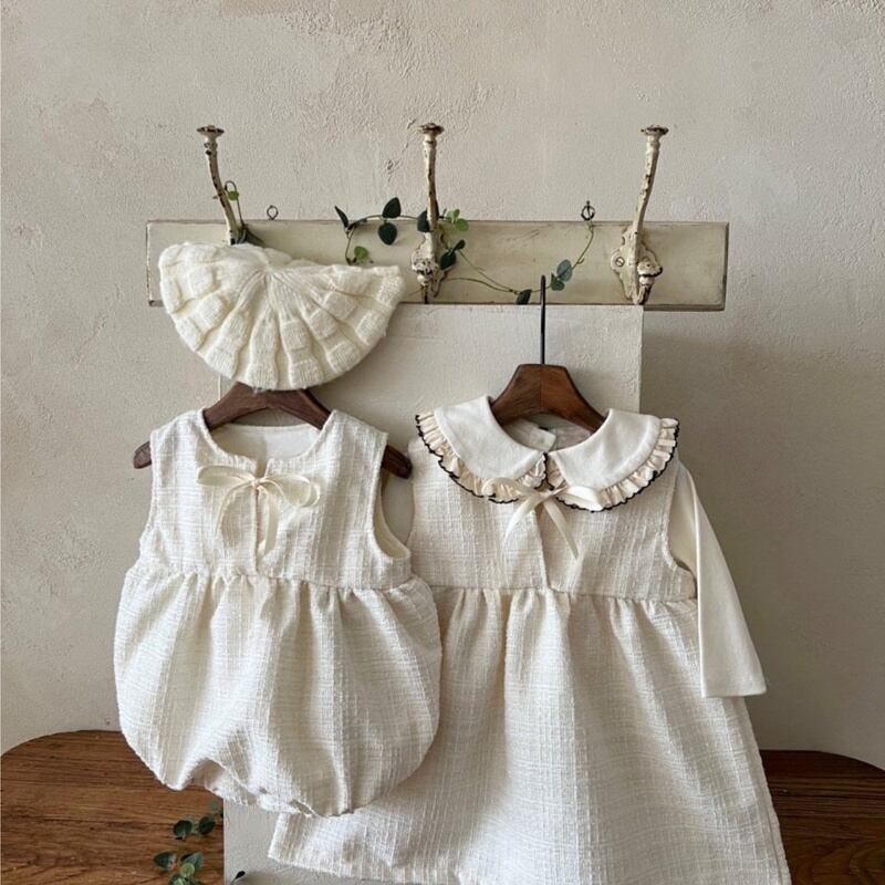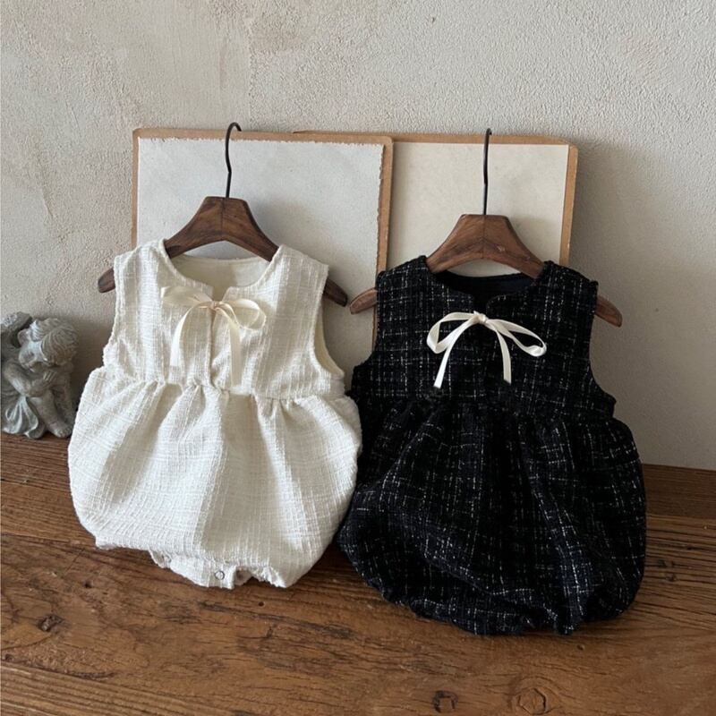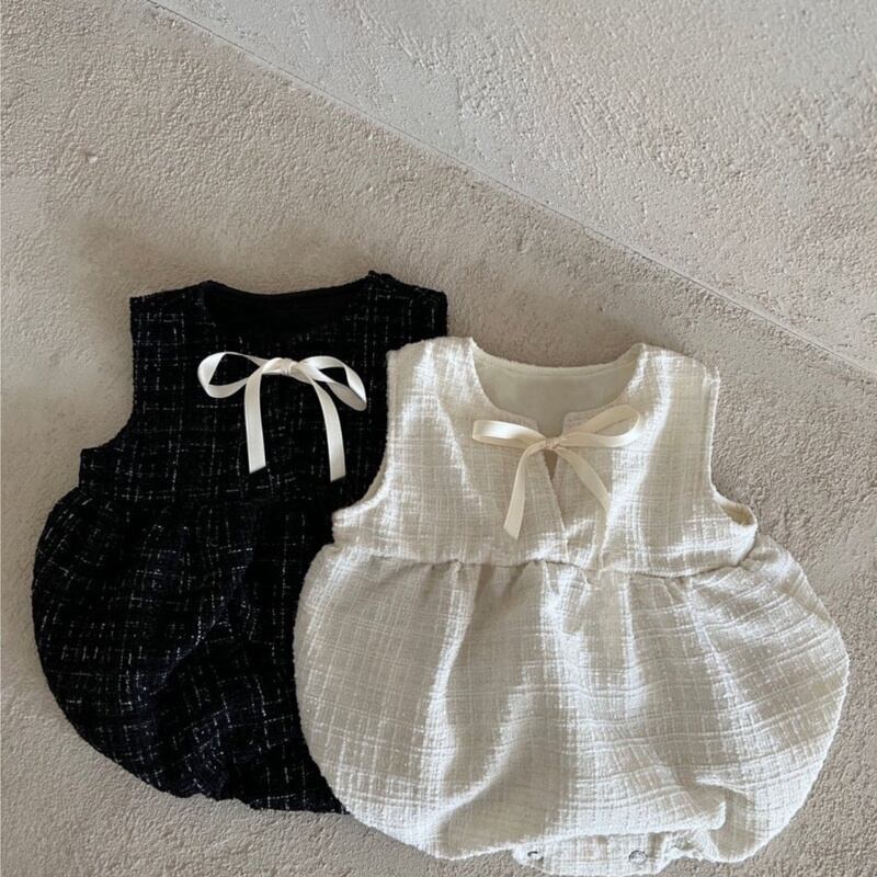 【BABY】2025新作 リボン付きノースリーブロンパース