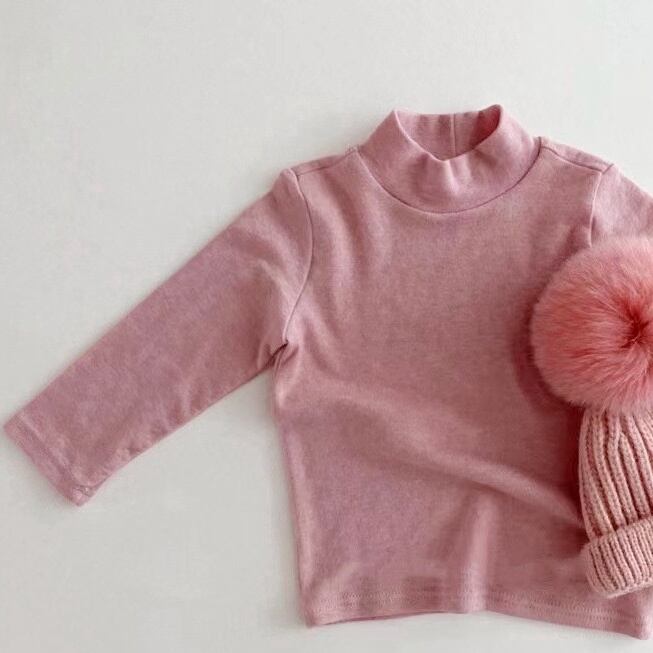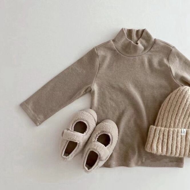 【BABY】ハイネック無地長袖シャツ