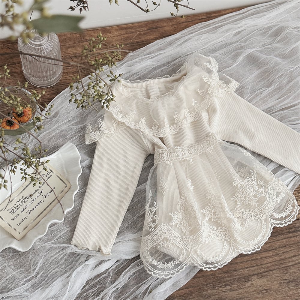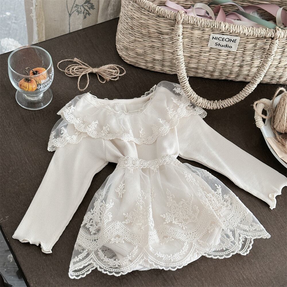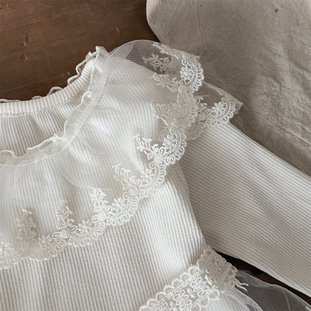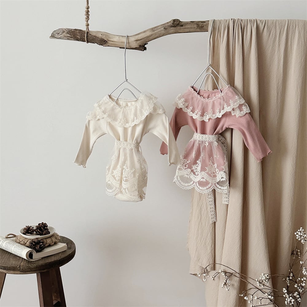 【BABY】韓国風 レース無地ロンパース レースエプロン