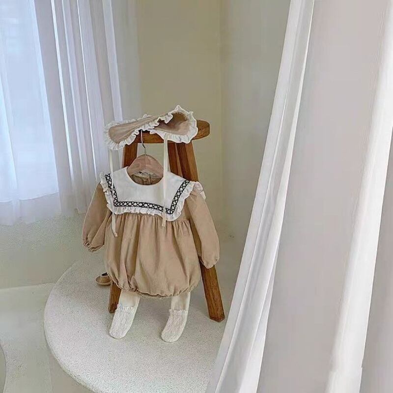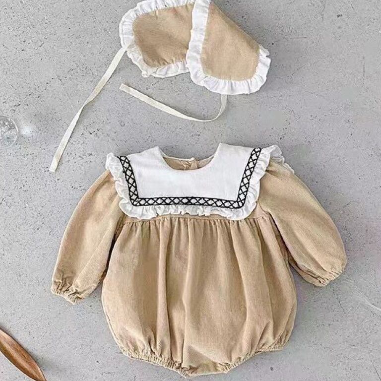 【BABY】韓国風 フリル長袖ロンパース