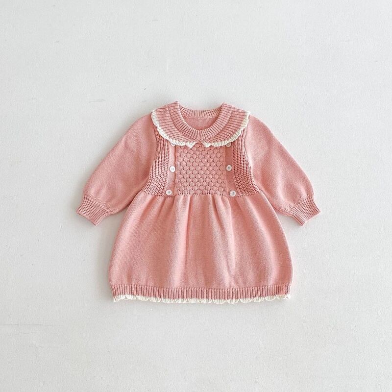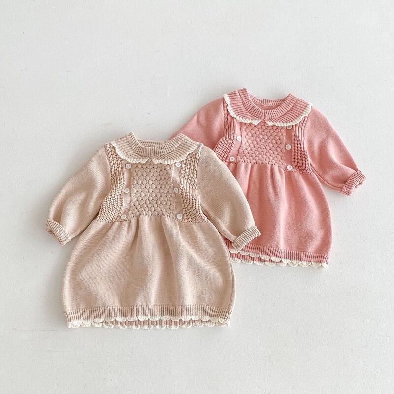 【BABY&KID】韓国風 ニット長袖ワンピース