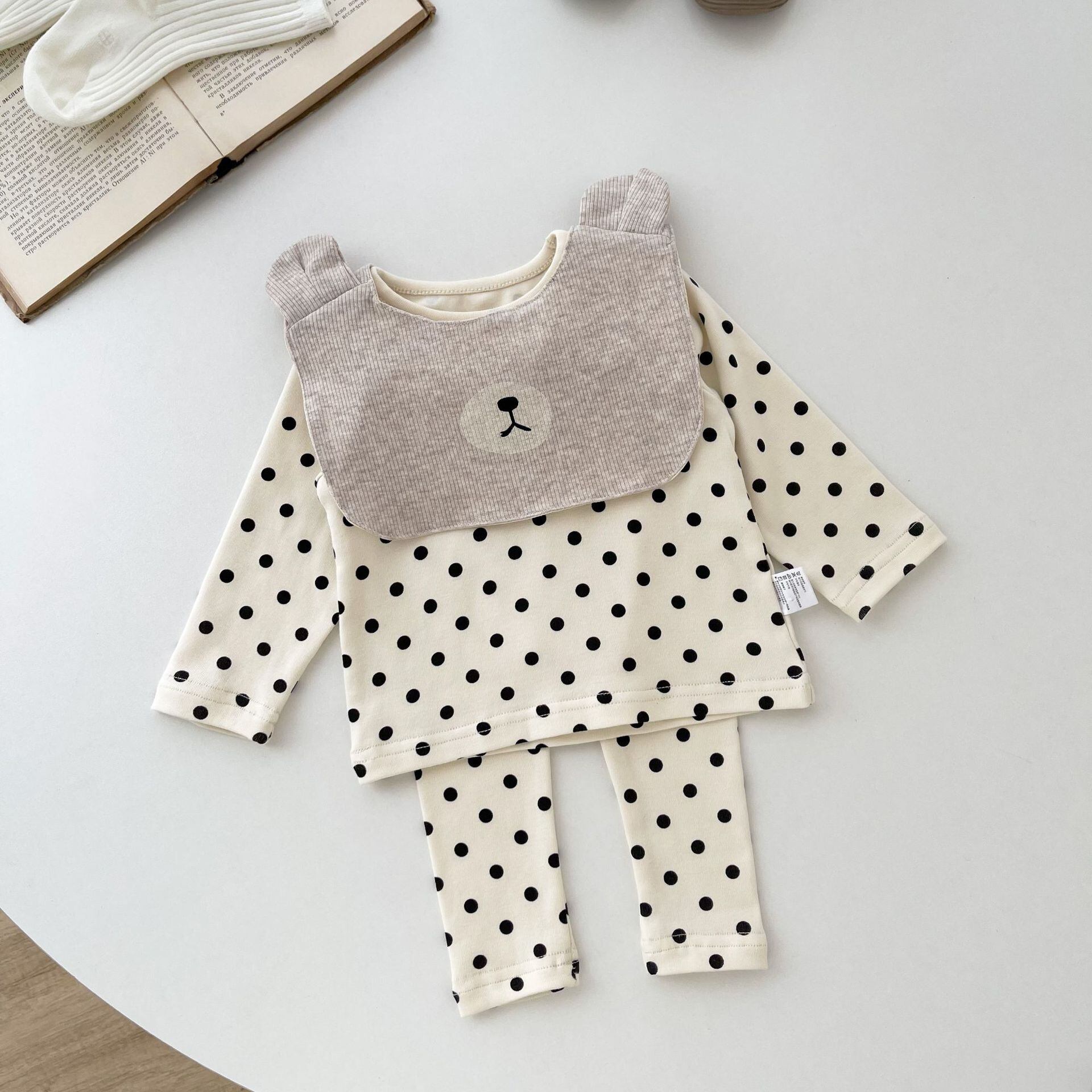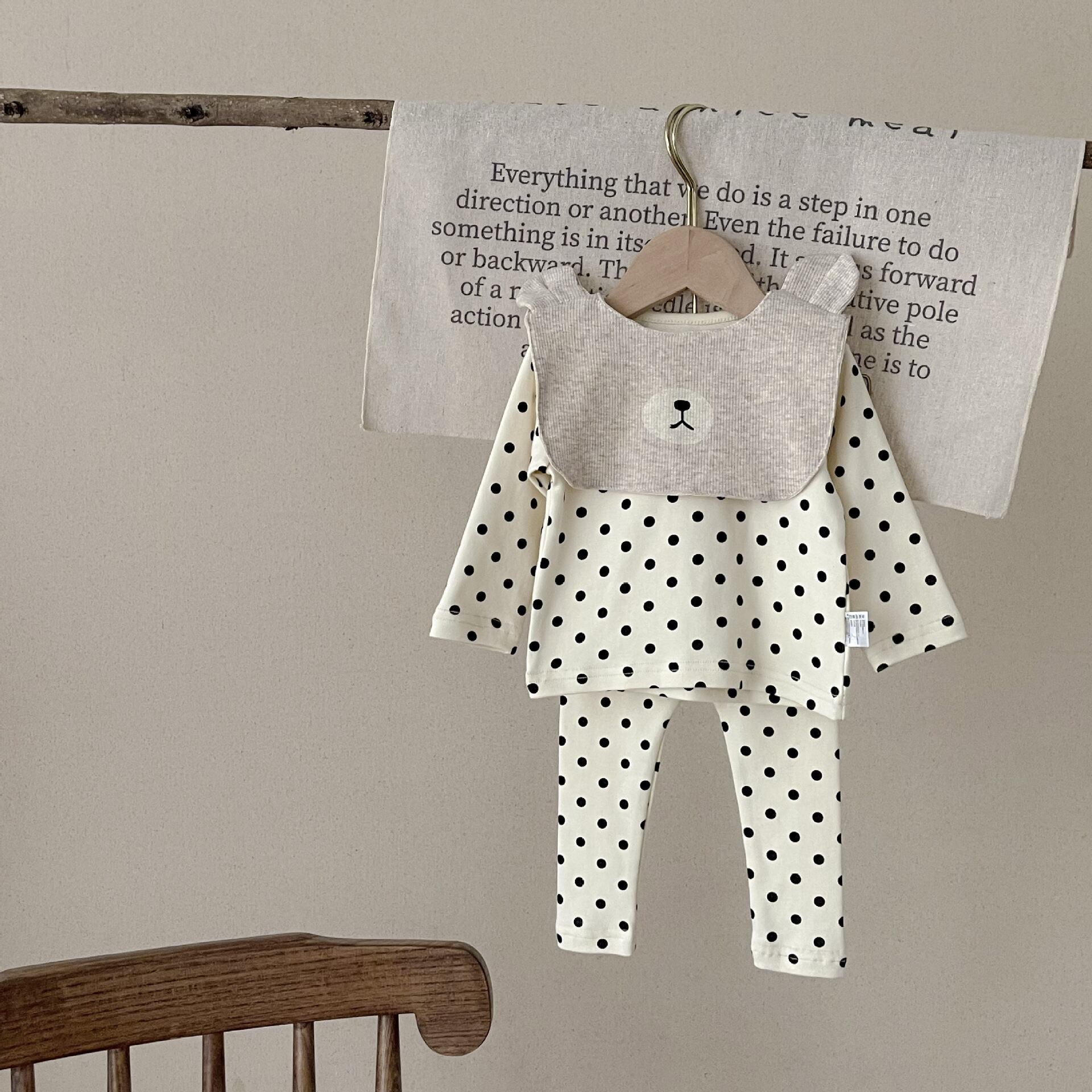 【BABY】韓国風 可愛いドット柄3点セットアップ